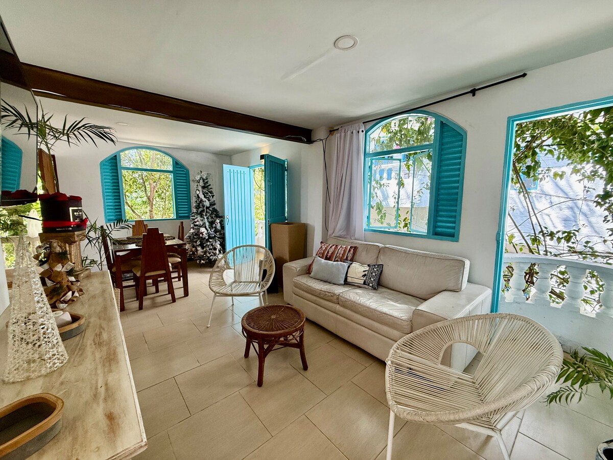 Aileniz, arkadaşlarınız veya partnerinizle paylaşmak için çeşme sokağına bakan Kolombiya santorini'nin bu merkezi ve pitoresk konaklama yerinin keyfini çıkarın. Napoles'e yakın 2,5 km. Doğal rezerv berrak nehir 20 dakika ve süpermarketlere ve restoranlara yakın. Evde çift kişilik yataklı 1 yatak odası vardır. Özel banyolu 3 kişi için 2 yataklı bir yatak daha vardır. Her iki yatak odasında da klima ve vantilatör vardır. 2 kişilik kanepeli oturma odası ve banyo, donanımlı mutfak, yemek odası, veranda, wifi, TV, ücretsiz otopark