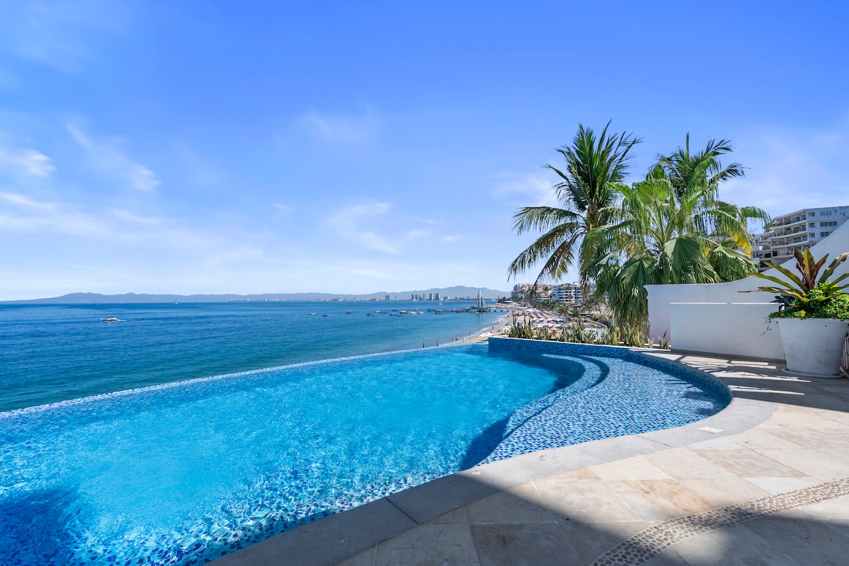 Puerto Vallarta ❤️'da lüks bir hayat yaşayın! Los Muertos Plajı'na sadece bir blok ötede, canlı Zona Romántica'nın göbeğinde, 4000 ft²'lik özel lüks bir inziva yeri olan SailView Penthouse'a hoş geldiniz. Bu muhteşem ferah 3 yatak odalı, 3,5 banyolu ve 4 özel balkonlu daireden körfez, dağ ve eski kasabanın inanılmaz manzaralarını izleyin. Popüler Los Muertos İskelesi, restoranlar ve canlı barlara birkaç adım mesafede. VIP hizmetleri. ⚠️Çatı havuzu 9 Haziran - 15 Eylül 2025 tarihleri arasında kapalı olacak⚠️