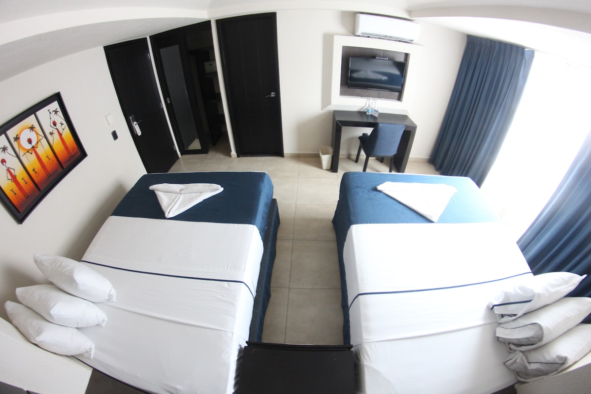 Puerto Vallarta'nın göbeğinde, Malecón'a sadece 5 dakika yürüme mesafesindedir. Konumu, çok çeşitli restoranların, el sanatları dükkanlarının ve tüm hizmetlerin tadını çıkarmanızı sağlıyor. Konforunuz için tasarlanmış, klima, ücretsiz kablosuz internet bağlantısı, kablolu kanallı akıllı TV, güvenli, özel banyo ve ücretsiz olanaklarla donatılmış odalarımız bulunmaktadır.
