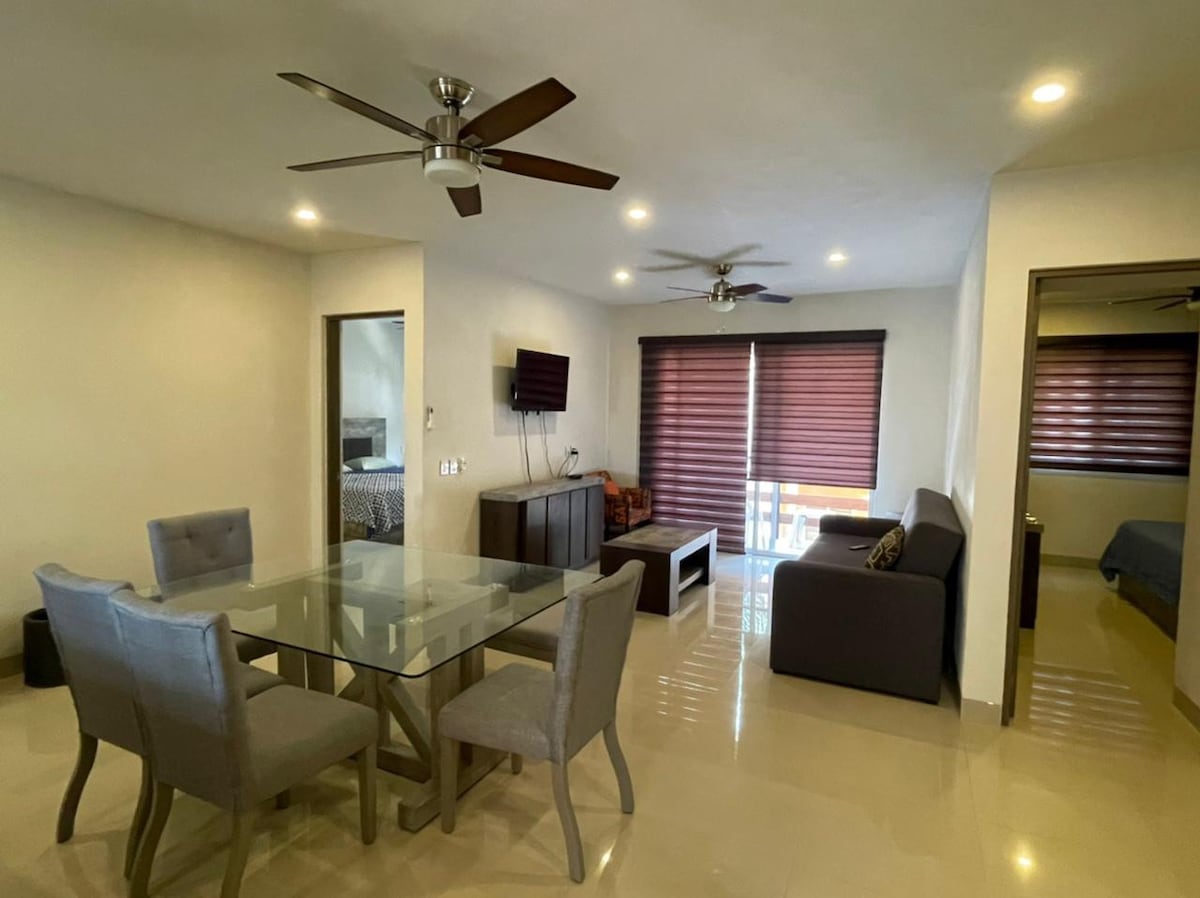 Apartment located in front of La Marina port, half a block from the Walmart shopping center, Sam's and market, 5 minutes from the beach on foot. It is located within the La Marina condominiums, it has 2 bedrooms, kitchen with breakfast area, utensils, air conditioning, TV, dining room, pool with gardens, palapa with wifi and grill, parking with 24 hour security.