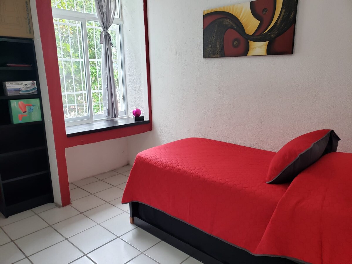Puerto Vallarta'nın merkezinde, ikinci katta, balkonlu, çok iyi konumda bir daire. İskele daireden iki blok ötede ve üç blok ötede her türlü tipik Puerto Vallarta el sanatlarını bulabileceğiniz belediye pazarını bulacaksınız. Günlük alışverişinizde daha fazla kolaylık için yakın restoranlar ve marketler. Bölgeye yakın spor salonu ve keyfini çıkarabileceğiniz gece kulüpleri. 50 MBS internet