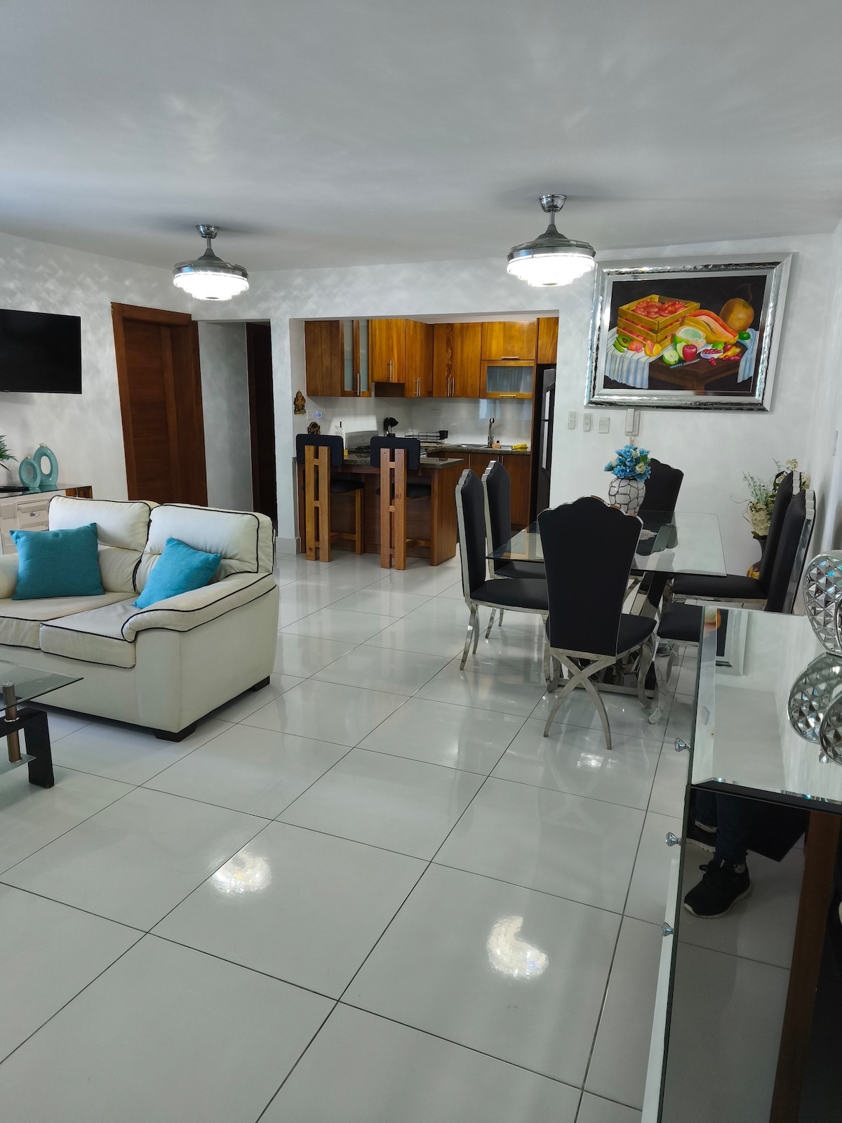 Bu daire ferahtır ve tüm yeni modern dekorasyonlara sahiptir. Eğlence amacıyla, turistler ve iş dünyası veya yerel üniversitelere veya etkinliklere katılan öğrenciler için mükemmeldir. Queen yatak odası setlerine sahip 3 güzel odası ve her yatak odasında bir özel banyo, her odada klima, dolaplar, akıllı TV 50inç 4K, stereo 7,1 Bluetooth internet KABLOSUZ İNTERNET BAĞLANTISI vardır. Yeni ve tam donanımlı mutfak, ızgara, yemek odası, çamaşır alanı, her amaçla muhteşem Skyview alanı ve Santiago Anıtı'na bakan büyük bir teras.