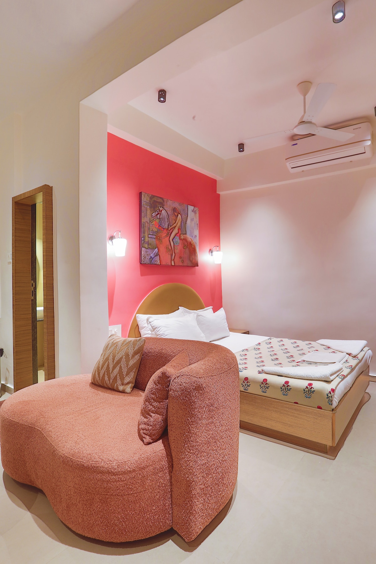 Modern konfor, sıcak aydınlatma ve zarif iç mekanları harmanlayan, özenle tasarlanmış 404 ft²'lik bir stüdyo daire olan 404 Luxe Haven'a adım atın. Özel hardal kadife kanepe, çiçek desenli arkadan aydınlatmalı rahat bir çift kişilik yatak, şık bir modüler mutfak ve yeşilliklerle dolu dinlendirici bir balkon içeren bu mekân bekarlar, çiftler veya iş için seyahat edenler için mükemmeldir. Çağdaş dekor, yumuşak nötr tonlar ve kusursuz bir konaklama için seçilmiş her şeyle huzurlu bir ortamın tadını çıkarın.