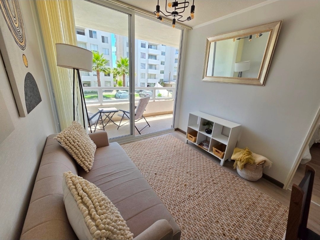 Disfruta de un lugar único, a metros de la playa y casino de juegos Enjoy. El espacio está equipado para un máximo de dos personas, posee un dormitorio con cama de dos plazas, TV, WIFI, cocina equipada. El condominio tiene seguridad 24/7, ascensores, estacionamiento privado del departamento, lavandería de pago, áreas verdes, todo lo necesario para que te sientas a gusto. Su ubicación es inmejorable, cerca de la playa, los mejores restaurantes de la zona, excelente conectividad.