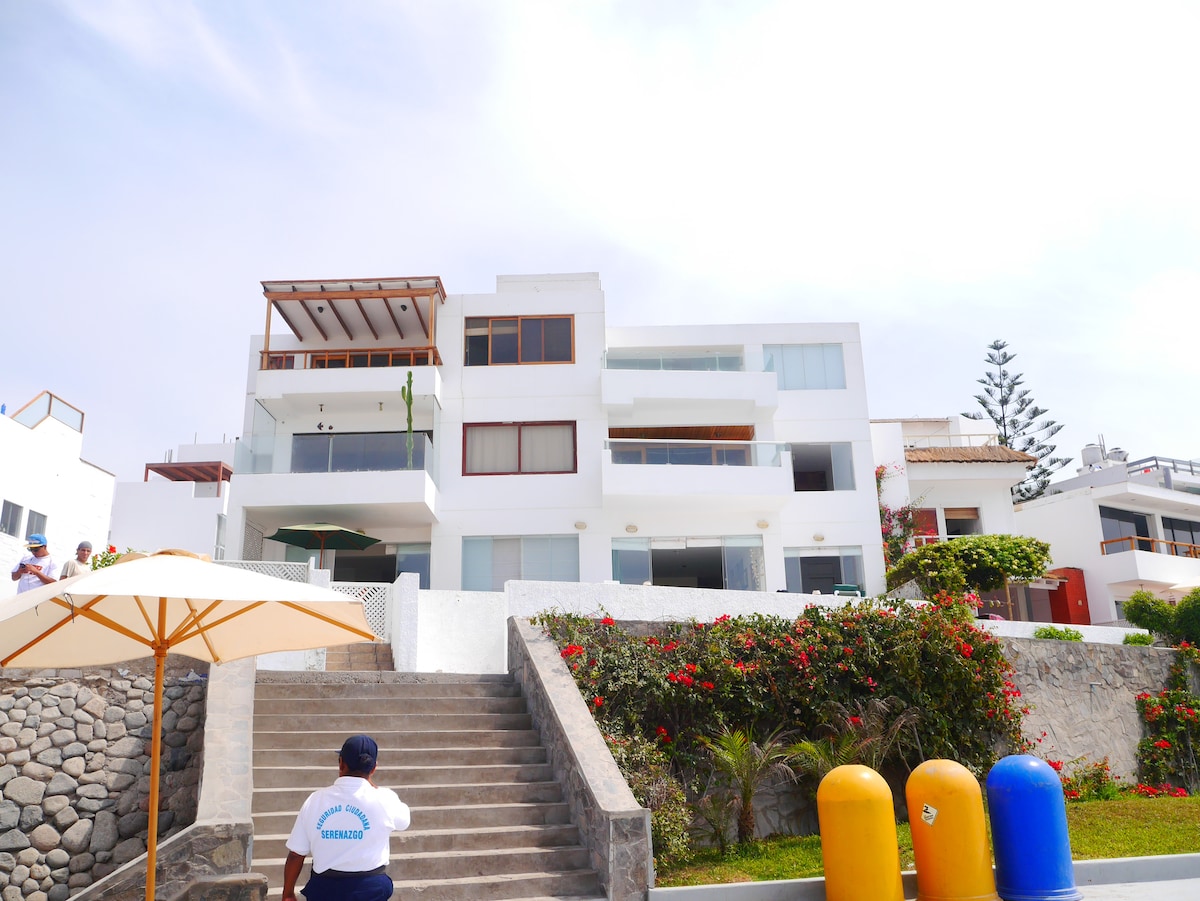 Escápate este verano 2026 a un acogedor depa frente al mar en primera línea en Punta Roca. Disfruta la piscina privada, terraza con vista increíble, parrilla y días de sol perfectos para relajarte con familia o amigos. Observa aves, delfines y pescadores, o llega en 5 min al centro de surf de alto rendimiento. Hay comercios, cajeros cerca y delivery (Rappi, Pedidos Ya, Wong,Tottus,etc). Ideal para disfrutar la playa, correr tabla,pasear en bici y vivir atardeceres inolvidables junto al océano.