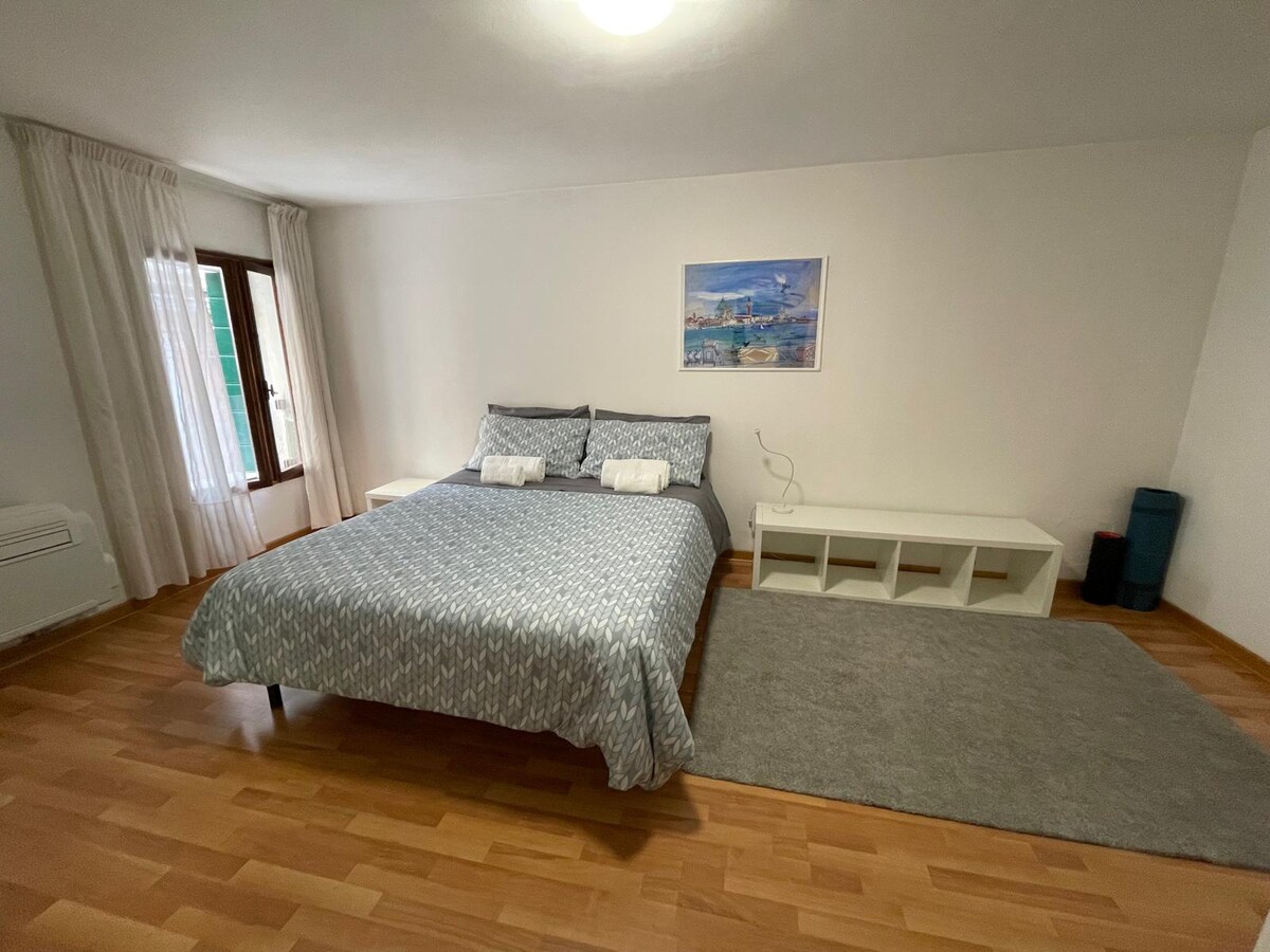 Ahşap kirişler ve çağdaş mobilyalar gibi tarihi öğeleri bir araya getiren bu samimi ve ferah dairenin kemerli pencerelerinden Venedik'in güzelliğini izleyin. Geniş pencerelerden, gondollarla geçilen kanalın ve Venedik'in en otantik bölgesi olan, her yaştan sanatçılar ve entelektüeller tarafından takdir edilen tipik Gotik binalarının tadını çıkarabilirsiniz; iki banyo ve her konforla donatılmış kitaplar ve sanat objeleri bulacaksınız.