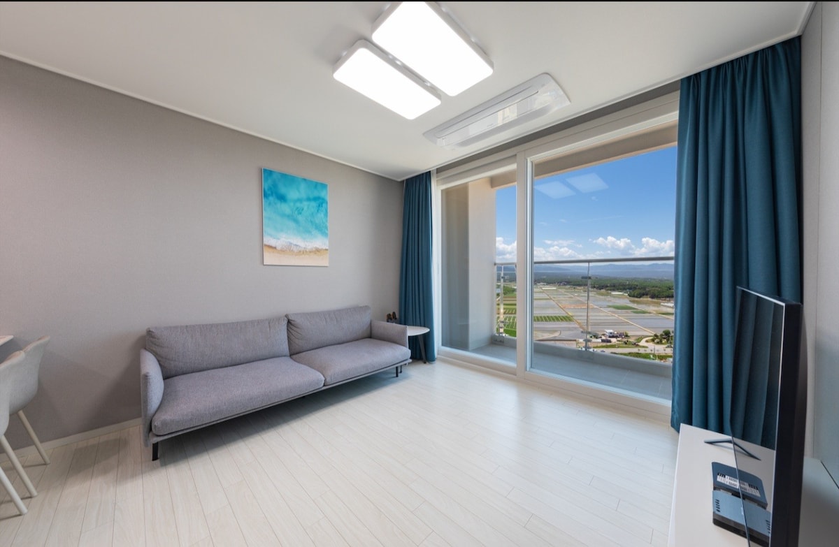 2023 Grand opening, E7 in Jukdo. - Bir stüdyo oda (çift kişilik yatak) - Dongsan Plajı'nın hemen önünde, plajdan 10 saniye. - 16.00 'dan itibaren giriş - Sabah11.00'e kadar çıkış yapın. - Ingu Plajı, Jukdo Plajı'ndan arabayla 3 dakika. - BTS MV konumu, Jumunjin Plajı'ndan arabayla 15 dakika. Kyungpo Plajı, Sok - Cho ve Seolak Dağı'ndan arabayla 30 dakika. - Buzdolabı, elektrikli ocak, mikrodalga fırın, yemek takımı, tencere, kızartma tavası - Şampuan, saç kremi, vücut şampuanı, kule - Odada sigara içmek yasaktır. Teşekkür ederim:)