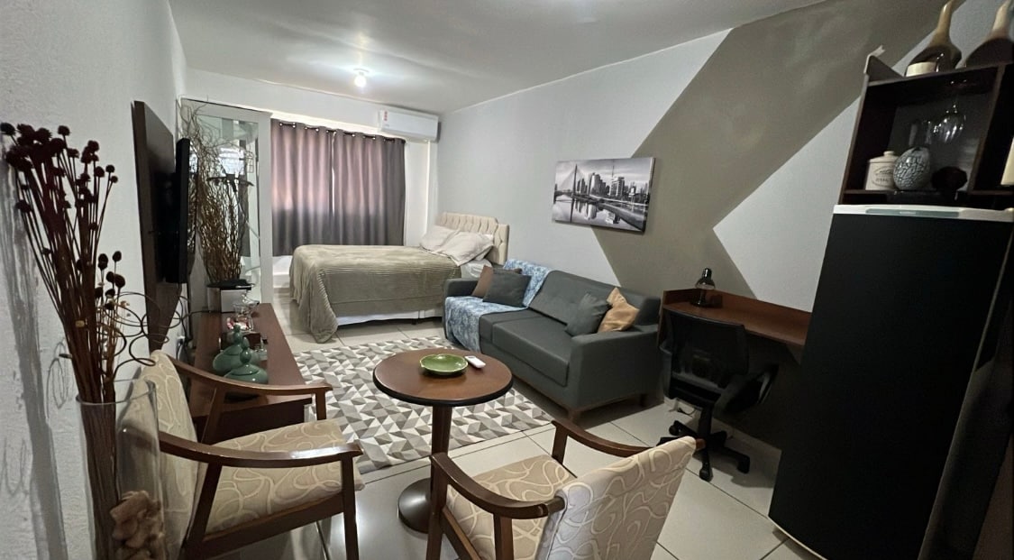 É um lugar tranquilo e bem-localizado, com padaria à 20 metros. Apartamento com 1 quarto cama queen, e sofá cama na sala. Oferecemos roupa de cama e banho. Estamos localizado à 3 quadras do centro da cidade. Estacionamento para 1 carro incluso.