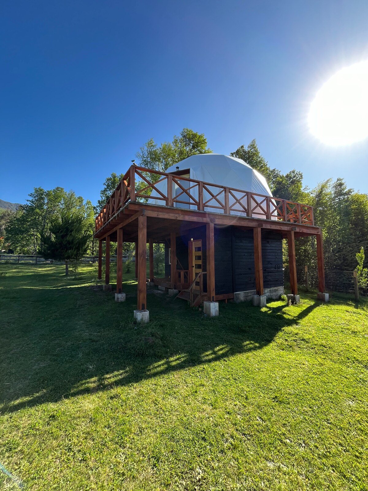 Yerden 2. 7 m yükseklikte dubleks. 2 dönümlük özel park. Sonsuzluğun panoramik manzarasına sahip güverteler ve hayallerinizin uçmasına izin vermek için asılı bir köprü. Isı yalıtımı, çift cam pencereler, yerden ısıtma ve yavaş yanan şömine. Queen boy yatak. Çalışma masası, kablosuz internet bağlantısı, buzdolabı, indüksiyonlu üst ve konaklamanın keyfini çıkarmak için gerekli tüm mutfak gereçleri. Muhteşem manzaralı duşlu tam banyo, havlular, saç kurutma makinesi, bide!, ateş çukuru, barbekü ve otopark. Asfalt yolda Pucón'a 6 km. Sahipleri tarafından işletildi.