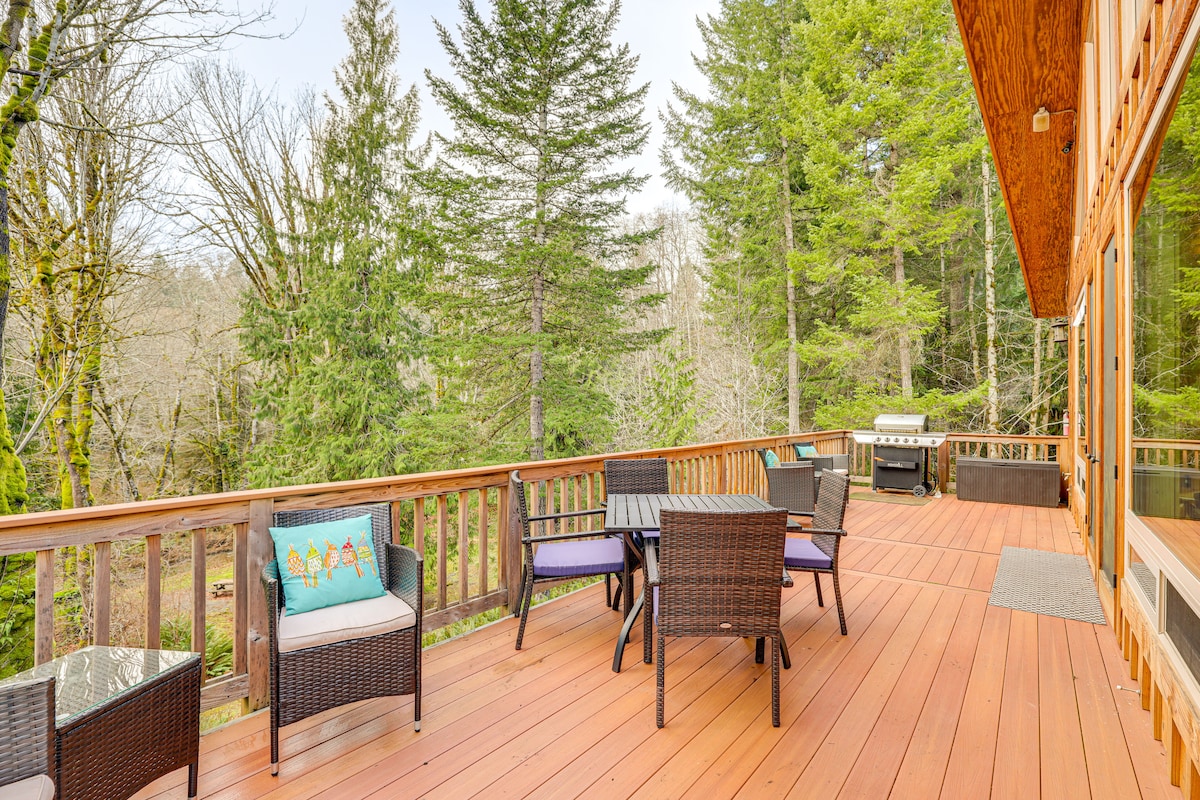Nehir kenarındaki bu kulübede huzur içinde kendinizi şımartın. Gazlı şöminenin yanında rahatlayın veya güvertedeki nehir ve yosun ağaçları manzaralı zarif mutfakta yemek pişirin. Yakınlardaki Discovery Trail'de (0,08 mil) açık havayı keşfedin. Sol Duc Kaplıcaları, Olimpiyat Milli Parkı, Crescent Gölü ve La Push'u ziyaret edin. Forks ve Kalaloch yakınlardadır. İki TV'de (1 Blu - ray, 1 Wi - Fi), 50 DVD'de eğlencenin keyfini çıkarın, ancak bulaşık makinesi olmadığını ve kablosuz internet bağlantısı ve cep telefonu hizmetinin KESİNTİLİ olabileceğini unutmayın.