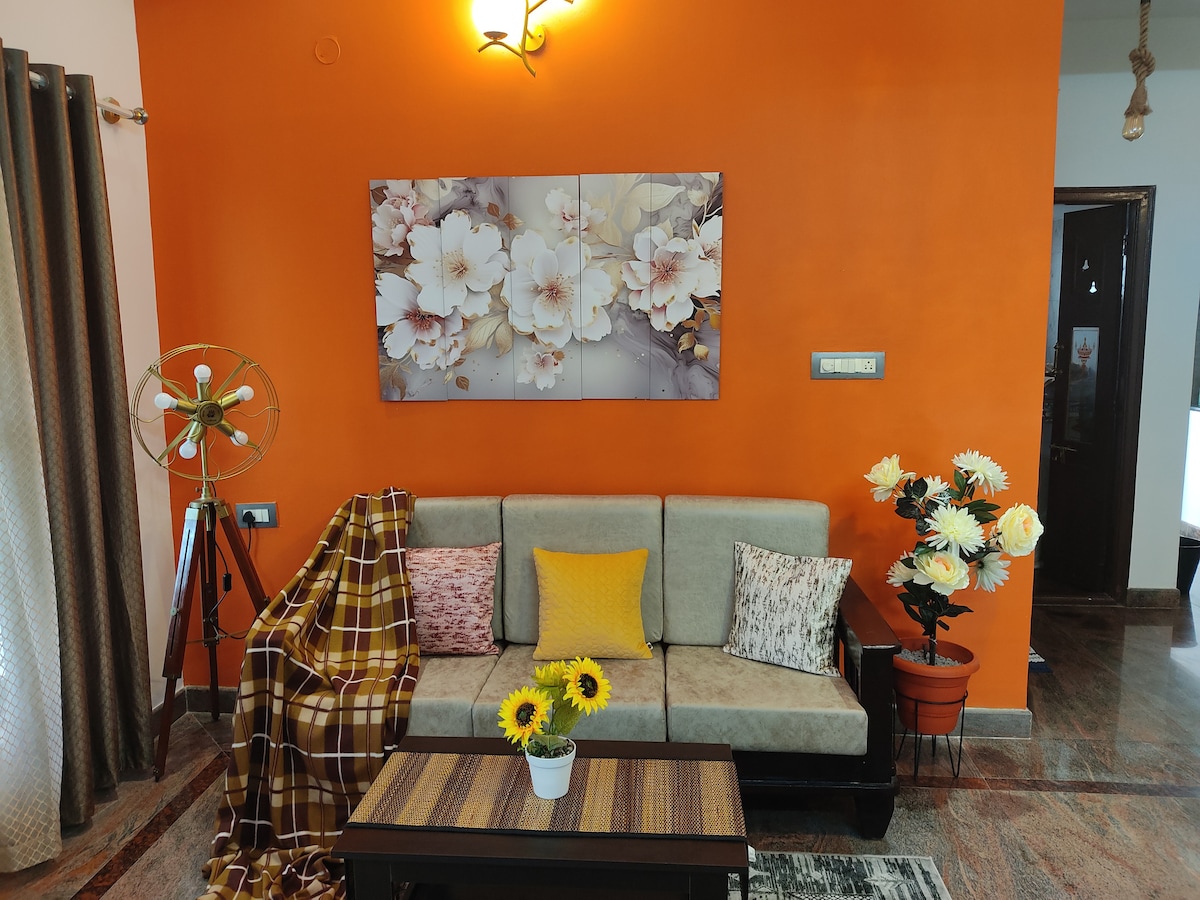 **!!!! Atithi Devo Bhava !!!** Güney Bengaluru'daki evinizden uzaktaki evinize hoş geldiniz! Kanakapura Road açıklarında huzurlu bir yerleşim bölgesinde yer alan bu 2 yatak odalı rahat daire, aileler, iş için seyahat edenler veya uzun konaklamalar için mükemmeldir. Doddakallasandra Metro İstasyonu'na (Yeşil Hat) ve birden fazla otobüs durağına kısa bir yürüyüş mesafesinde elverişli bir konuma sahip olan evimiz, şehrin önemli bölgelerine kolay erişim sunar. Not: 2 yatak odalı odalardan yalnızca bir yatak odasında klima vardır.