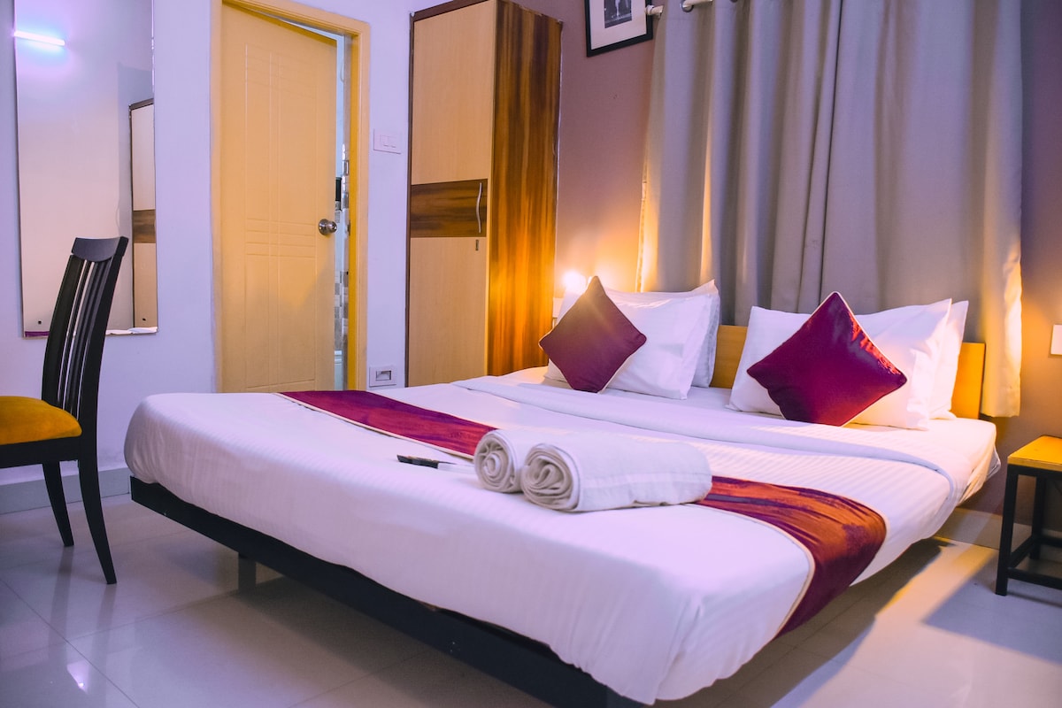 Relax in our cozy Classic Room at Naksha Tree, Ramapuram—perfect for solo travelers or couples. Enjoy a comfy queen bed, ensuite bathroom, AC, Wi-Fi, and smart TV. Thoughtfully designed for comfort and calm. Located in a peaceful neighborhood, close to local shops, eateries, and attractions. A perfect blend of simplicity and serenity!