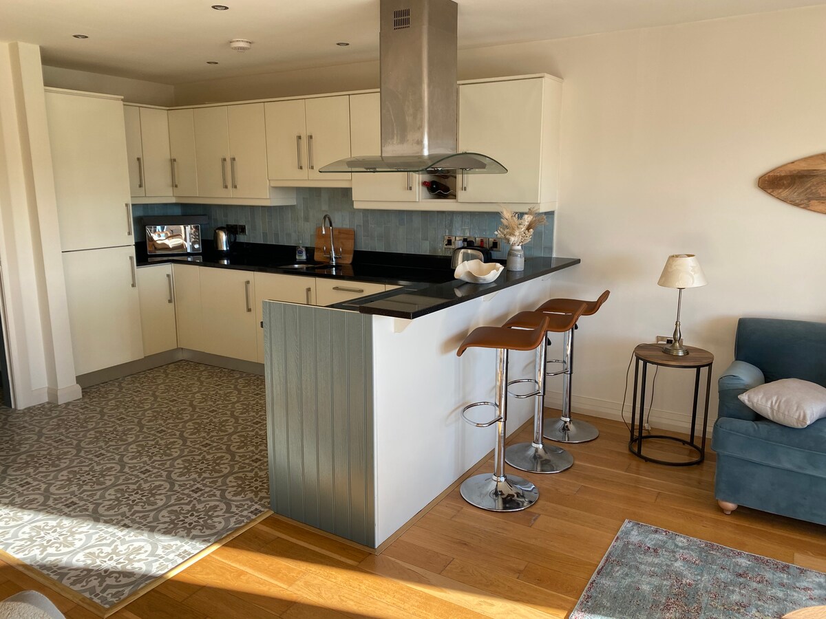 Portrush'un merkezinde deniz manzaralı 3 yatak odalı konforlu daire