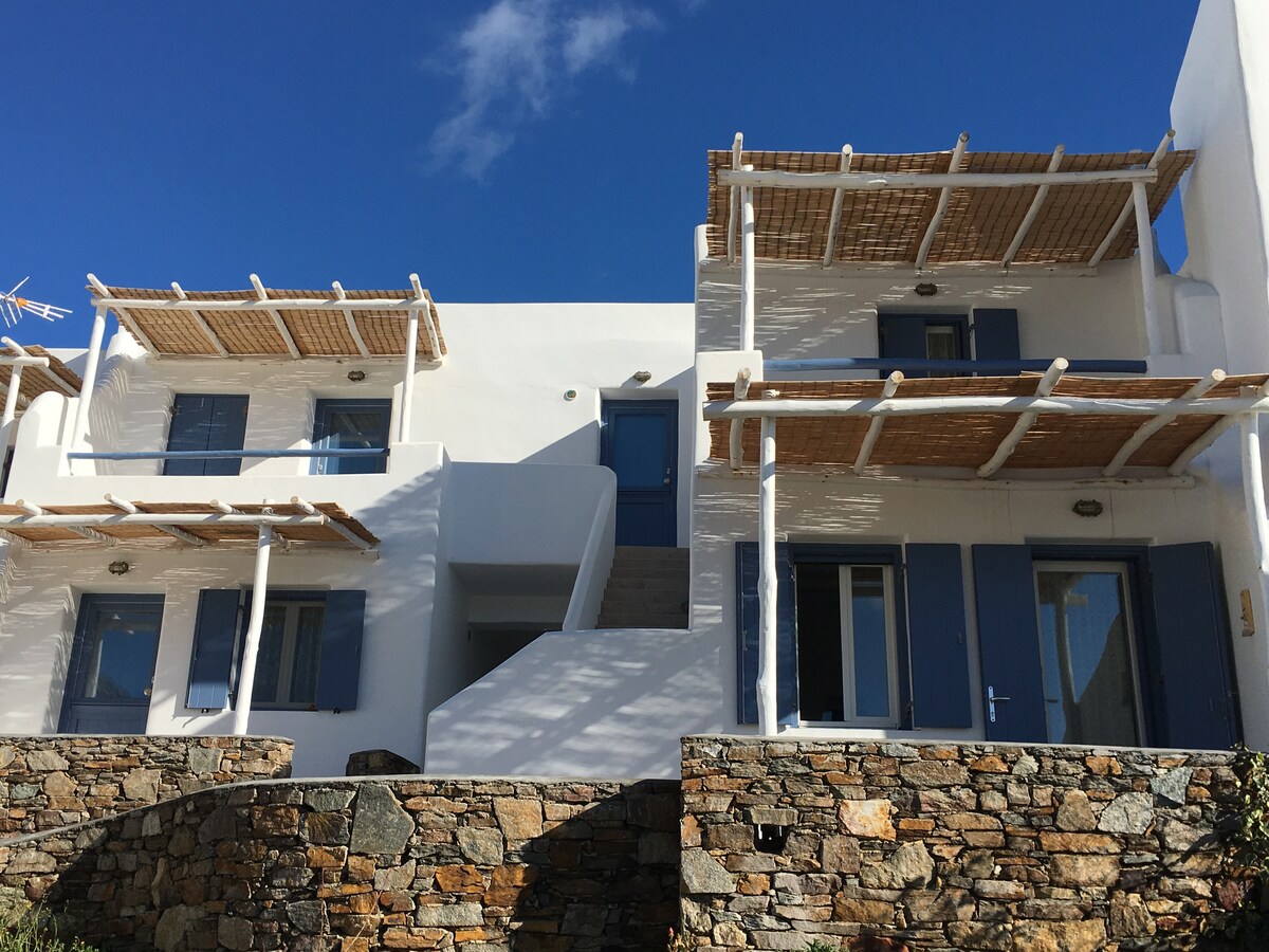 Aileler veya 2 çift için mükemmel olan bu 75 m2'lik mülk, Livadi'ye 1,5 km uzaklıktadır ve muhteşem bir deniz ve komşu adalar manzarası sunar ve 5 evden oluşan bir kompleksin parçasıdır. Oraya giden yol asfalt değil, son kısmı çimentodur ve oldukça diktir. Ancak tüm arabalar ve scooter'lar erişebilir.