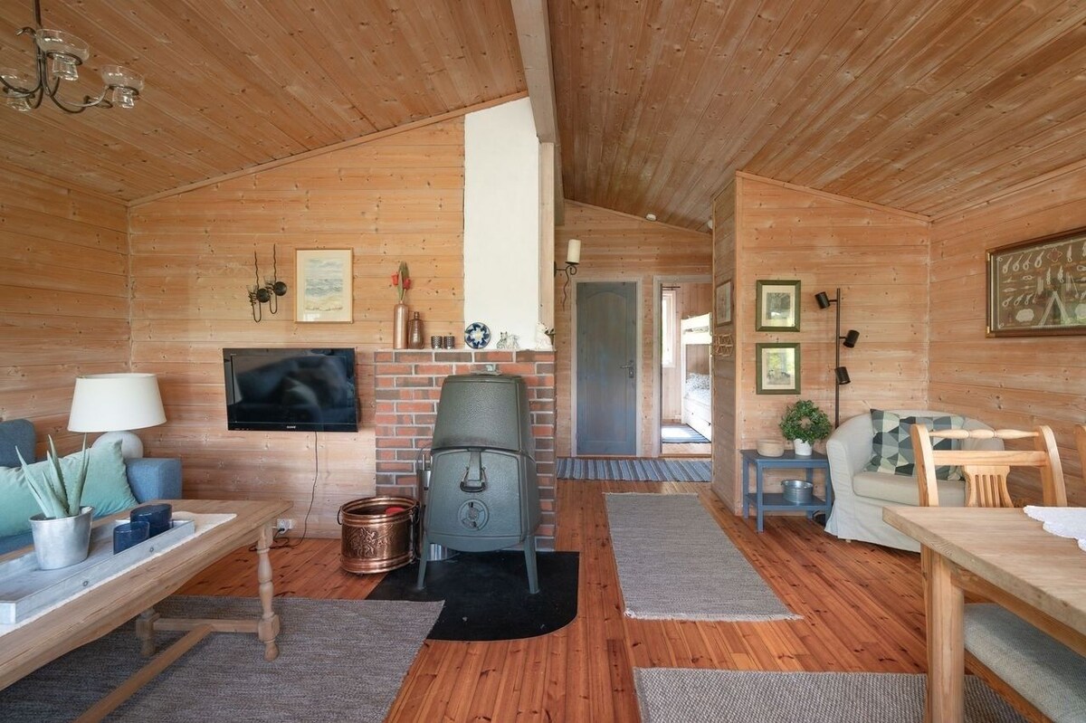 Adada deniz manzaralı ve iyi standartta kulübe. Oturma odasında/mutfakta iyi bir tavan yüksekliği vardır. Mekân hem kırsal hem de deniz kenarında yer almaktadır. Erişim, kulübeye 200 m yürüme mesafesinde deniz yolu (sağlanan tekne) ve iskele üzerinden birkaç dakikadır. Adanın balıkçılık, plaj ve iskele, tenis, futbol ve frizbi golf sahası gibi çeşitli aktiviteleri vardır. Fiyordun hemen karşısında alışveriş ve restoran. Mekânın iyi güneşli koşulları var. Tüm ailenizle veya iyi arkadaşlarınızla sadece bir hafta sonu dinlenin.