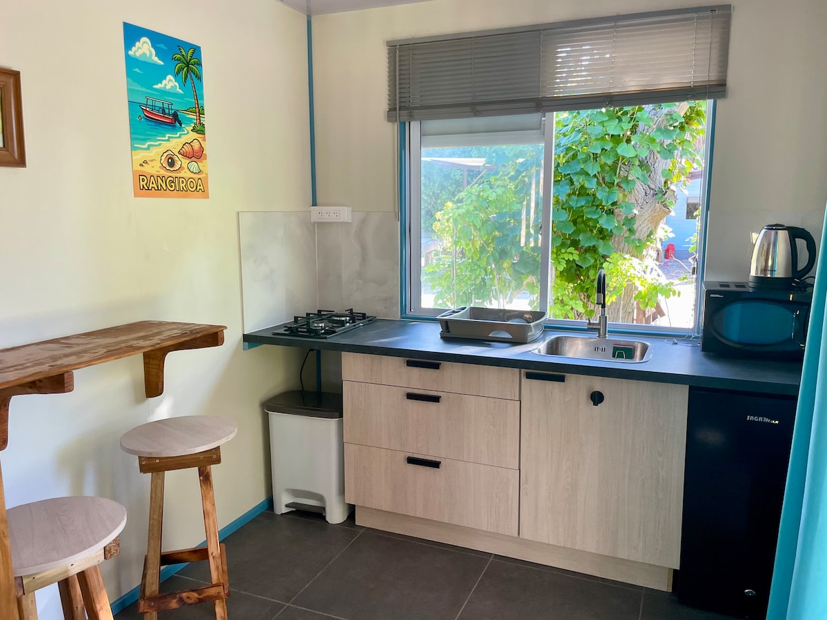 Avatoru Köyü'nde geniş ve huzurlu bir aile mülkünde yer alan bu büyüleyici bungalov, yerel özgünlüğü modern konforla harmanlıyor. Tam donanımlı, dinlenmek ve gevşemek için mükemmel bir yer, marketlerden, atıştırmalık barlardan, postaneden ve marinadan sadece kısa bir yürüyüş mesafesinde ve adanın popüler sörf noktasından sadece 5 dakika uzaklıkta. Rangiroa'nın güzelliğini ve huzurunu deneyimlemek için ideal bir üs.