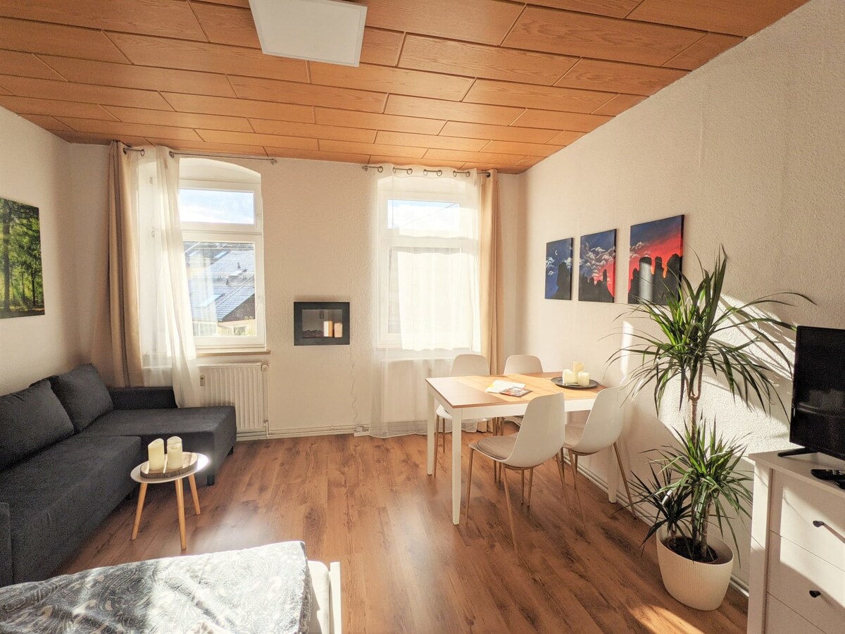 Bu daireden, milli park, toplu taşıma ve Elbe bisiklet yoluna mükemmel bağlantının keyfini çıkarabilirsiniz. Örneğin, Schrammstein manzarasına yürüyerek, doğrudan trenle kaleye ve feribot ve Kirnitztalbahn ile Kuhstall kaya kapısına ulaşabilirsiniz. Krippen feribotu ile rahatlayabilir ve Elbe'nin diğer tarafına ve Bad Schandau (Elbkai) şehir merkezine ücretsiz olarak (misafir kartı) ulaşabilirsiniz.