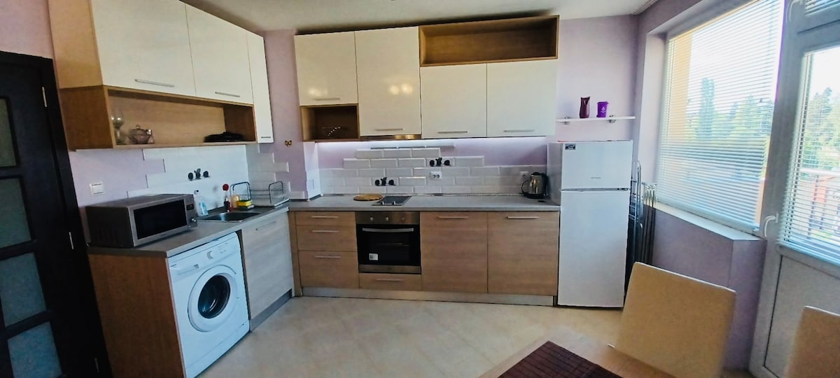 Daire, güvenlikli ve çocuk alanı olan güvenlikli bir sitede yer almaktadır. Ünite aydınlık ve havadardır , Vitosha manzaralıdır. Tam donanımlı mutfağı ve içme suyu arıtma sistemi vardır. Geniş ve aydınlık oturma odası. Geniş, konforlu çift kişilik yatak ve vestiyer bulunan yatak odası. Büyük ve konforlu yatak ,çalışma masası ve gardıroplara sahip çocuk odası. Modern banyo ve duşlu ve tüm temel armatürlerle şehir içi ulaşım duraklarına, alışveriş merkezlerine yakındır. Şehir merkezine 15 dakika mesafededir.