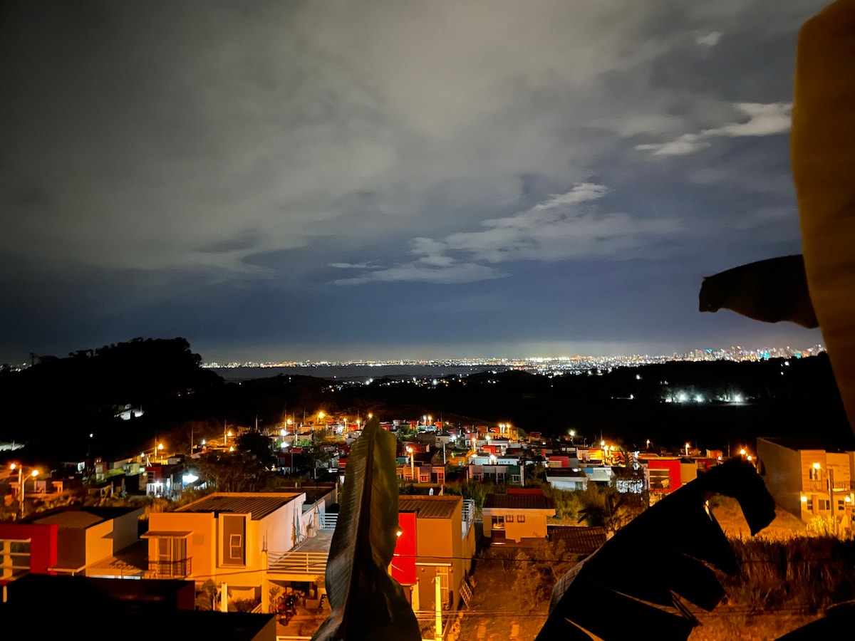 Harika gün batımı manzaralı, tepeden bakan oda!