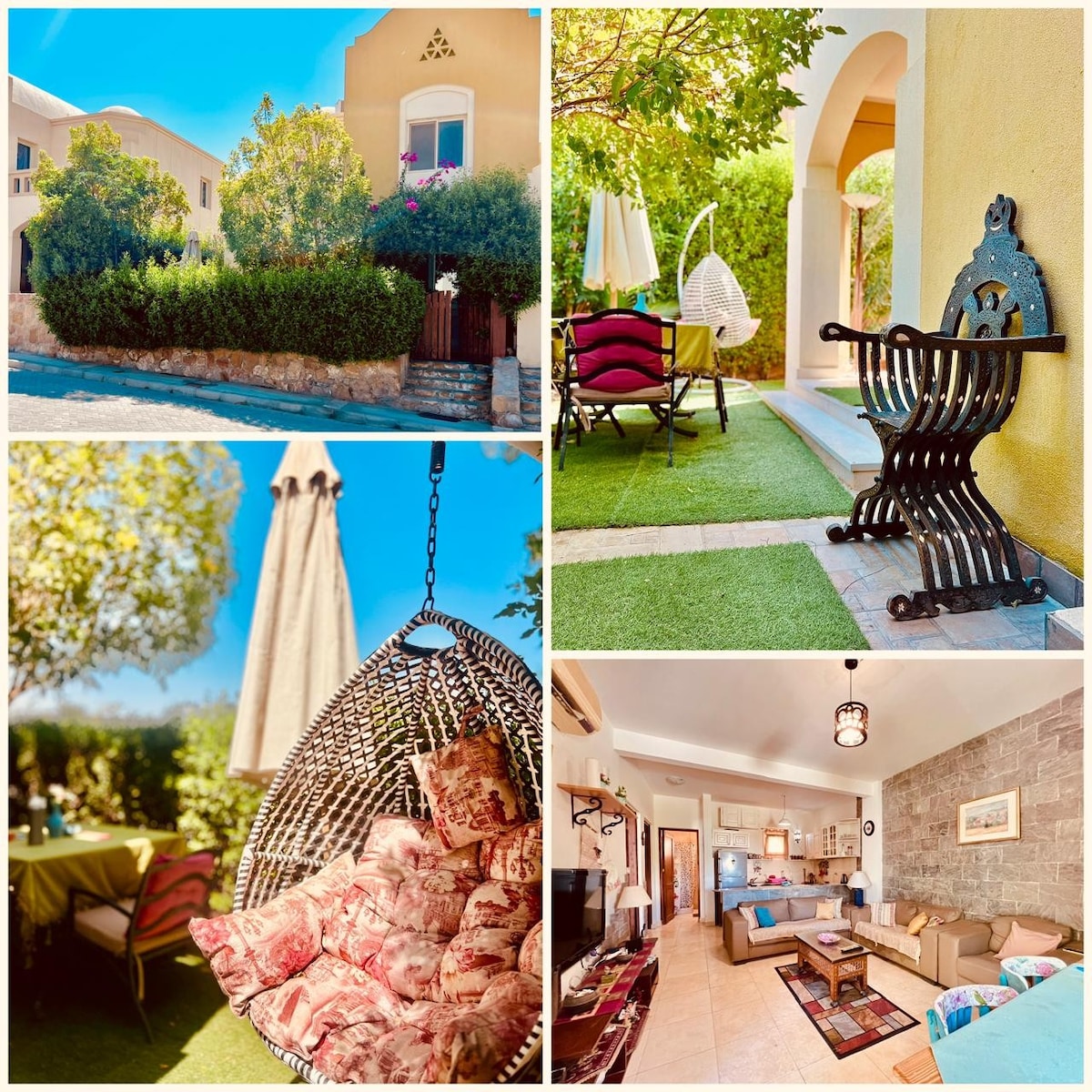 Bu özel ve romantik konaklama yerine bayılacaksınız. El Gouna'daki cennetimizi keşfedin - özel gölü ve Nübye kubbeleri olan 3 yatak odalı bir ev. 3 odalı evimiz, huzur, lüks ve su kenarında benzersiz bir konum arayan herkes için rüya gibi bir destinasyondur. Bu vahada özel bir göl vardır, sessiz bir konumdadır ve yine de şehir merkezinin tam ortasındadır. Restoran, bar ve süpermarketlere kolayca erişilebilir ve yürüme mesafesindedir. Ücretsiz yüksek hızlı kablosuz internet bağlantısı! Kano ile!