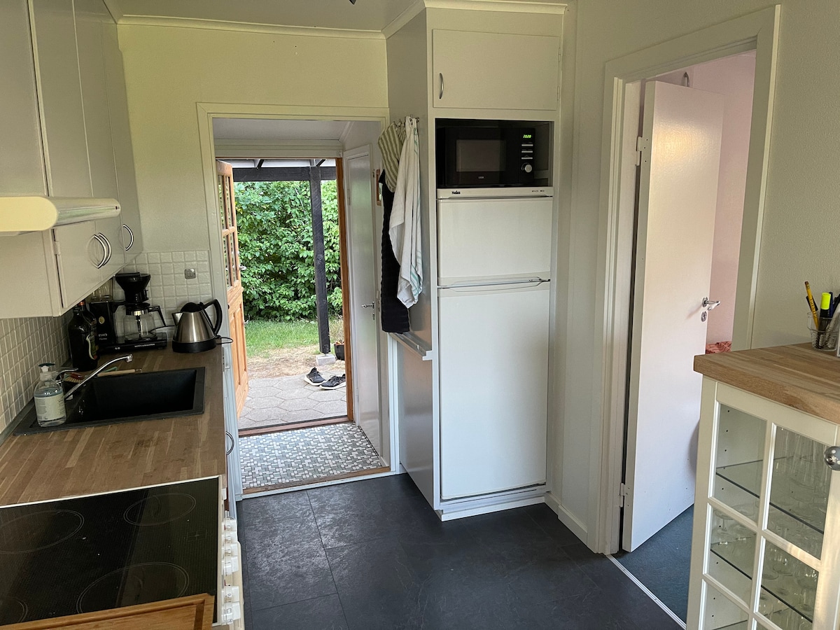 Bu eşsiz ve sakin yerde dinlenin. Çok sayıda kuş, sincap vb. bulunan, çitle çevrili, doğal, geniş ve güzel bir arsa üzerinde yer alıyor. 48 m²'lik güzel, aydınlık tatil evi. 2 oda var, bir odada 11/2 çift kişilik yatak, diğer odada 2 tek kişilik yatak var. Yerden ısıtmalı güzel bir banyo. Çok sayıda ekipmanı olan güzel bir mutfak. TV, şömine, internet vb. olan güzel oturma odası. Güzel bir doğal alanda yer alıyor ve çok huzurlu. Güzel ahşap teras, mobilyalar iyi. Dâhil olanlar: nevresim takımı, havlular, elektrik ve su.