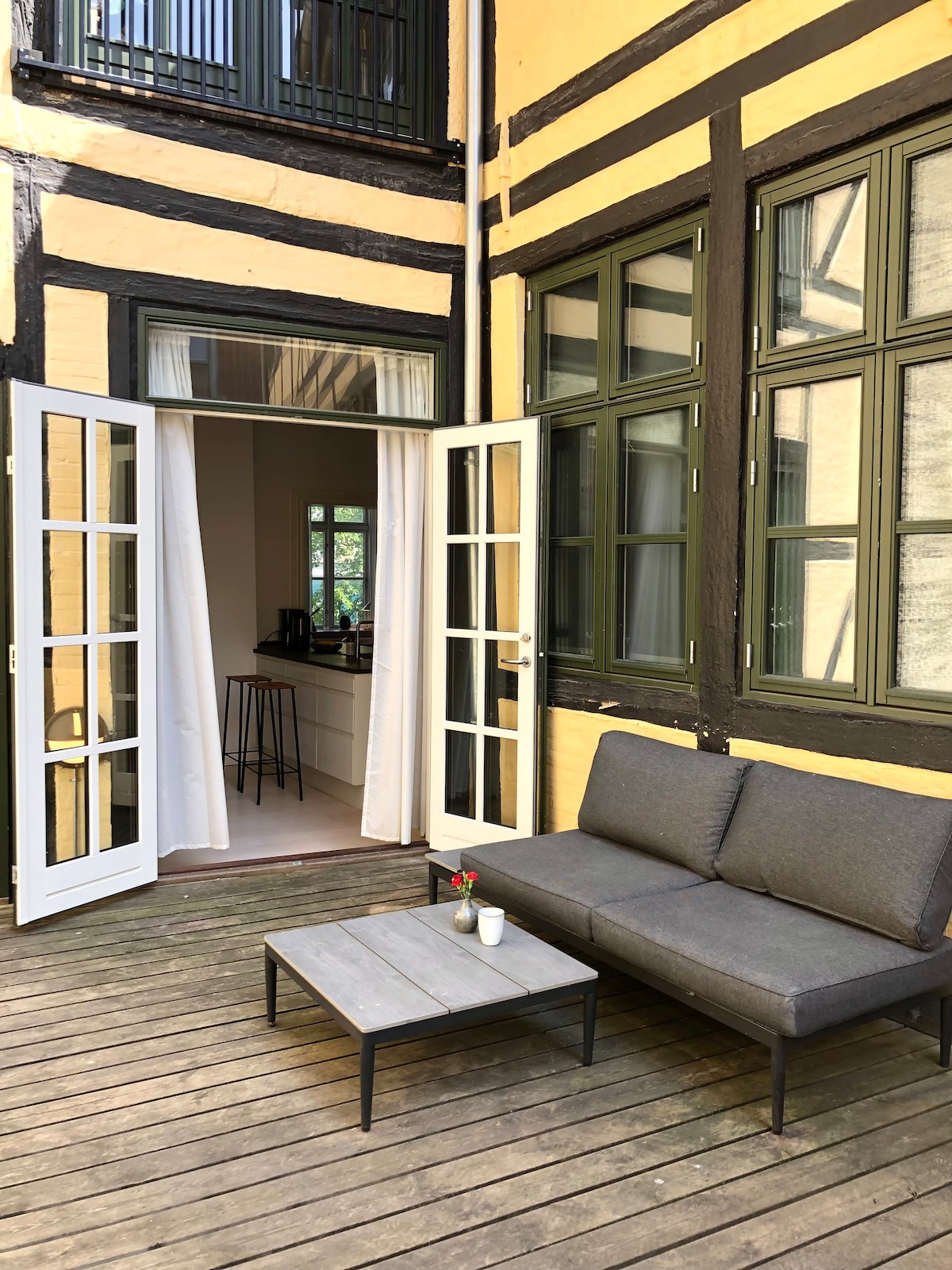HYGGE'in simgesi! Şehrin göbeğinde lüks, rahat İskandinav havası. Tivoli ve Belediye Binası'na çok yakın. Bu listelenmiş ve şık bir şekilde restore edilmiş dairede rahat bir çift kişilik yatak, yağmur duşlu banyo, modern mutfak, rahat oturma odası ve gömme dolap bulunmaktadır. Misafirlerimiz bize bu nadir bahçe dairesini sevdiklerini söylüyorlar, ancak onu bu kadar benzersiz kılan şey sessiz ve tamamen özel bahçesi. 1730'dan kalma gizli mücevherimizde, üst katta yaşıyoruz, Strøget'in yanında, Marais of CPH'de yakın: "Pisserenden" IG: @historichouseandgarden