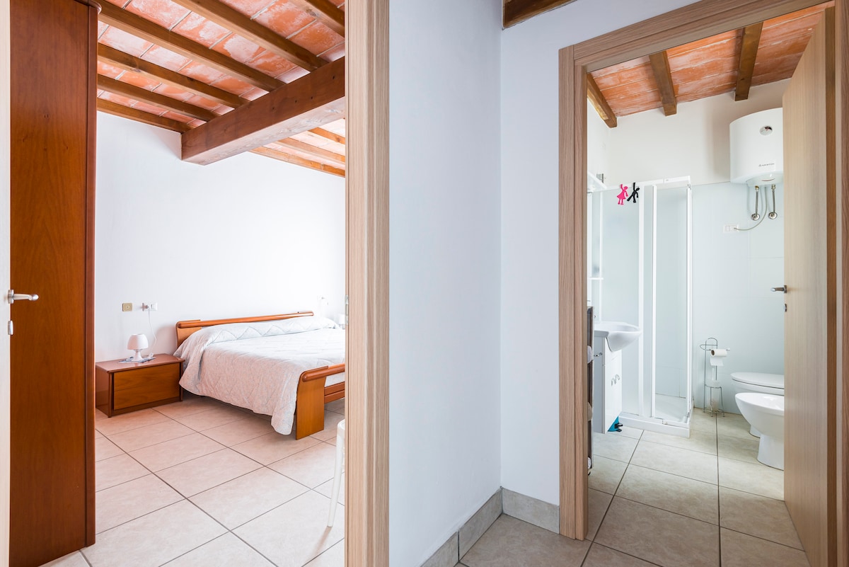 Delightful two-room apartment located in a historic building in the center of Modena, strategically located for walking to the historic center and the city's main attractions. Novi Park covered parking is located in front of the apartment, and the train and bus stations are less than a 10-minute walk away. Enjoy a fantastic view of the Ghirlandina Tower and the city rooftops. The peaceful and quiet atmosphere will make your stay unforgettable.