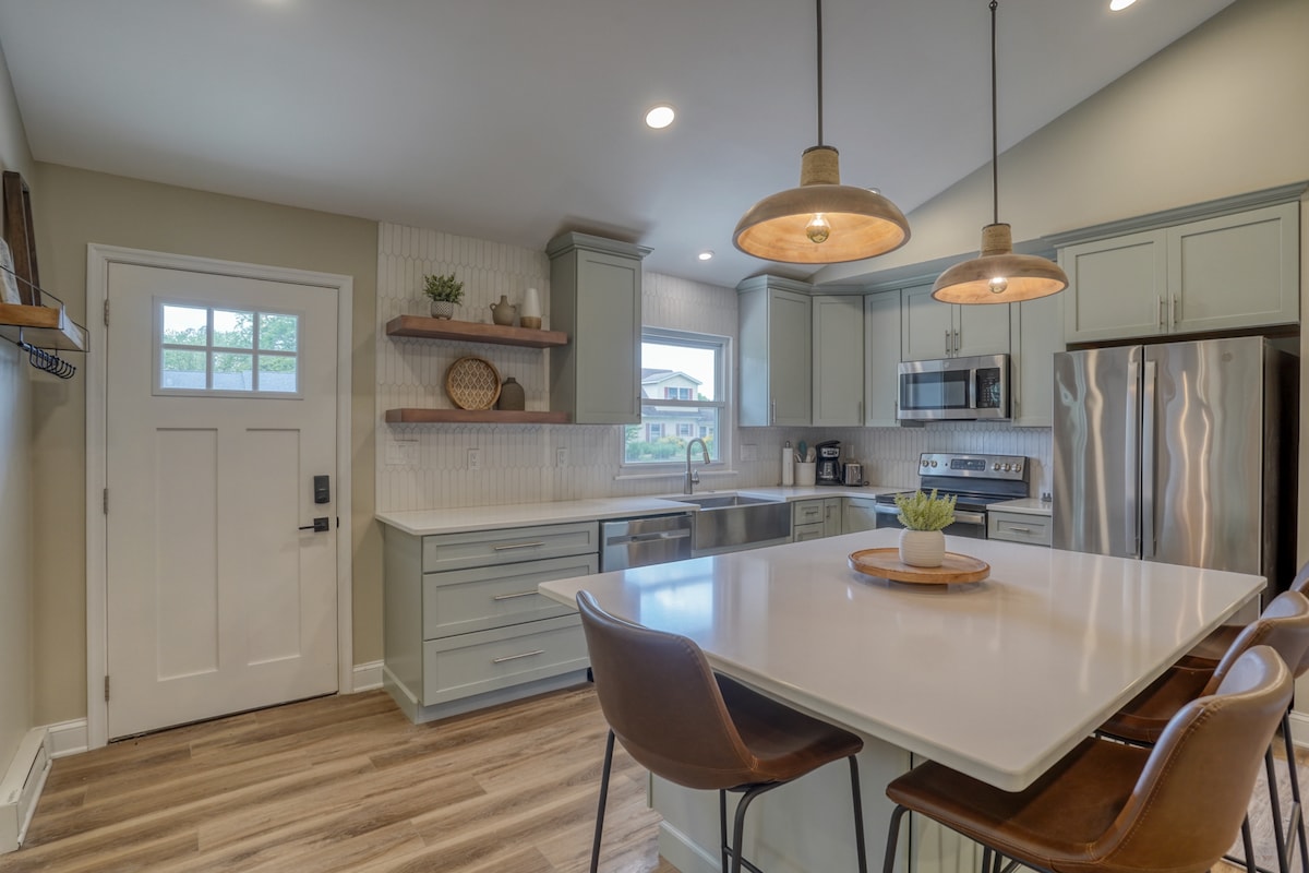 YENİ çit YENİ KURULDU! 7 Hudson, mükemmel bir kaçamak için ihtiyacınız olan her şeye sahip, tamamen yenilenmiş, üç yatak odalı, iki tam banyolu/aile ve evcil hayvan dostu bir kulübedir. Her odada 55 inç TV. Bethany Beach kasabasına bir milden daha az mesafede ve restoranlara, yürüyüş yollarına, parklara ve diğer turistik yerlere yürüme mesafesindedir. CO üreten cihaz yoktur. Her iki katta da kablolu CO monitörleri. İlginiz için teşekkürler. (1. ve 2. katta kral yataklı yatak odası)
