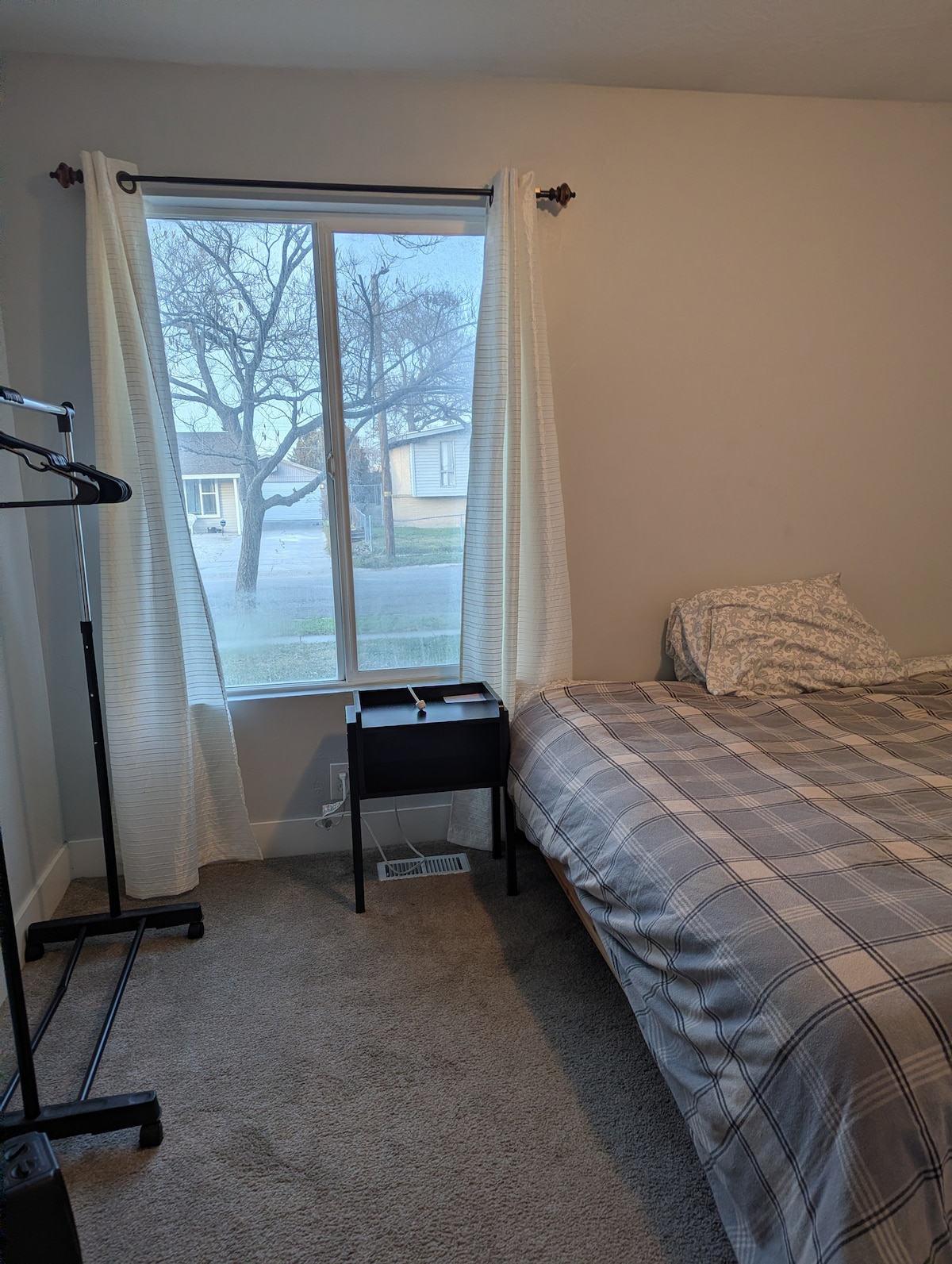 Spacious King size bed in a large main bedroom with a private bathroom. Enjoy a cup of coffee, tea, hot coco, or water in the common living room. 1 mile away from a shopping district with Walmart, Target, restaurants, bars, Movie theater, Trampoline park, gym, Gelato, Crumble cookie, and more. A pickleball and tennis court are just around the corner. 20 min south of the SLC airport. A 35 min drive to 5 different ski resorts. There is a book in the common room for hiking trails nearby.