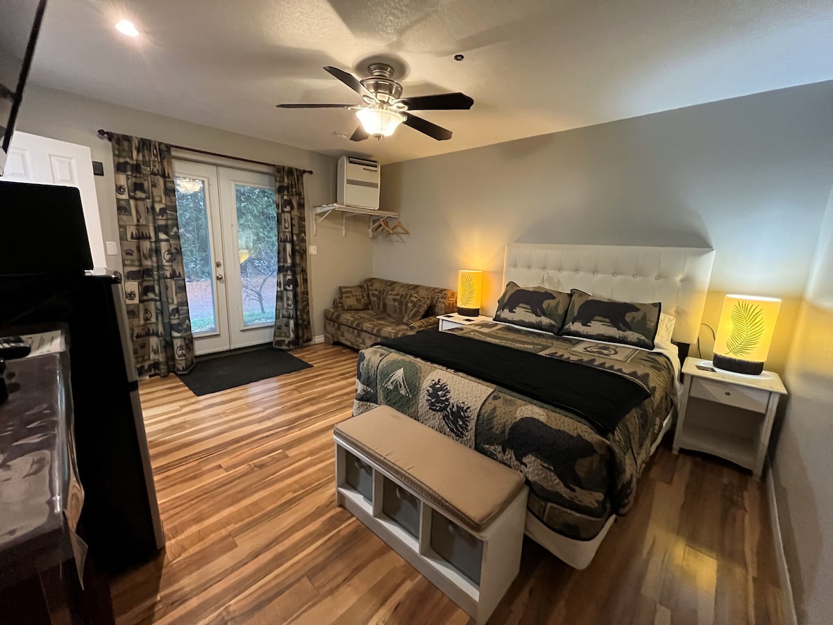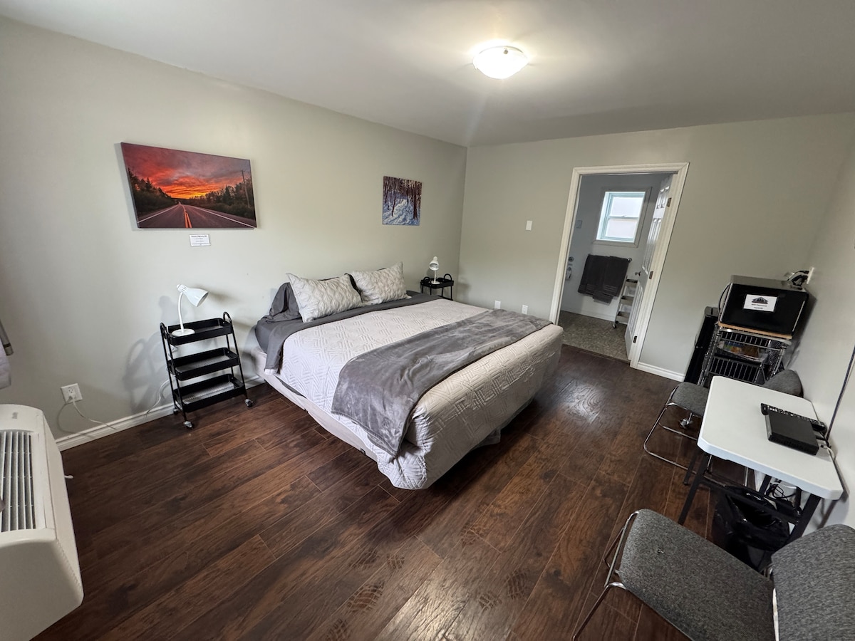 New in 2026: no pets. LIVE MUSIC on Tuesday, Friday, and Saturday nights! This is a private room above our licensed bar, Bongopix Tavern. We serve food, alcohol, and espresso coffee 3 nights a week (Tues/Fri/Sat). Enjoy Algonquin Park during the day. Party at the Tavern at night! All guests must be age 19+