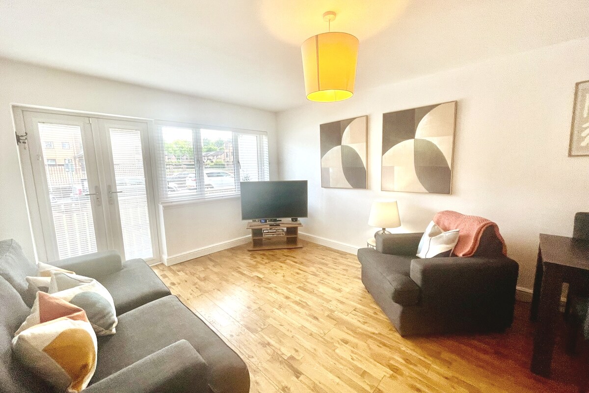 GLA yakınında çarpıcı 2 yataklı daire/havaalanı/otopark/kablosuz internet bağlantısı