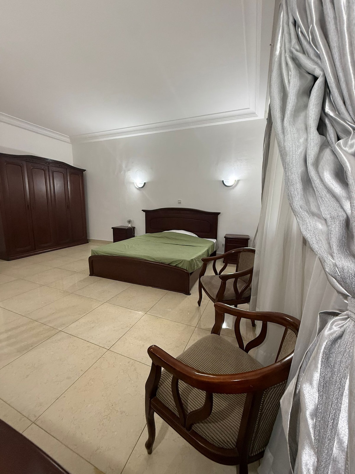 Séjournez dans ce logement calme et sécurisé, idéal pour vacances ou déplacements : 2 chambres doubles climatisées ❄️ 2 salles de bain 🛁 Séjour avec cuisine ouverte 🛋️ Internet 🌐, eau chaude 💧, groupe électrogène 🔌 Terrasse et espace extérieur 🌿 Sécurité et services inclus : gardien 👮🏾♂️, alarme 🚨, ménage 🧹, serviettes 🛁, produits d’hygiène 🧴, pressing gratuit, navette aéroport A/R offerte. 🚘 Voiture mise à disposition : 15 000 FCFA/jour, chauffeur inclus (hors carburant).