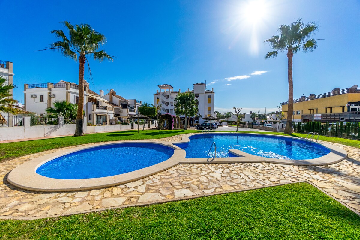 Villamartin bölgesi, Orihuela Costa, Güney Costa Blanca. Kapalı sitede ev, 2 yatak odası, 1 1/2 banyo, her yerde klima, 5 ortak havuz. *ÜCRETSİZ KABLOSUZ İNTERNET BAĞLANTISI* *İNGİLTERE TV* TURİZM LİSANSI VT485258A NRA (Número de Registro de Aquiler) ESFCTU0000030580005487150000000000000000000VT485258A7 KADASTRO 5616901XH9051N0165HU