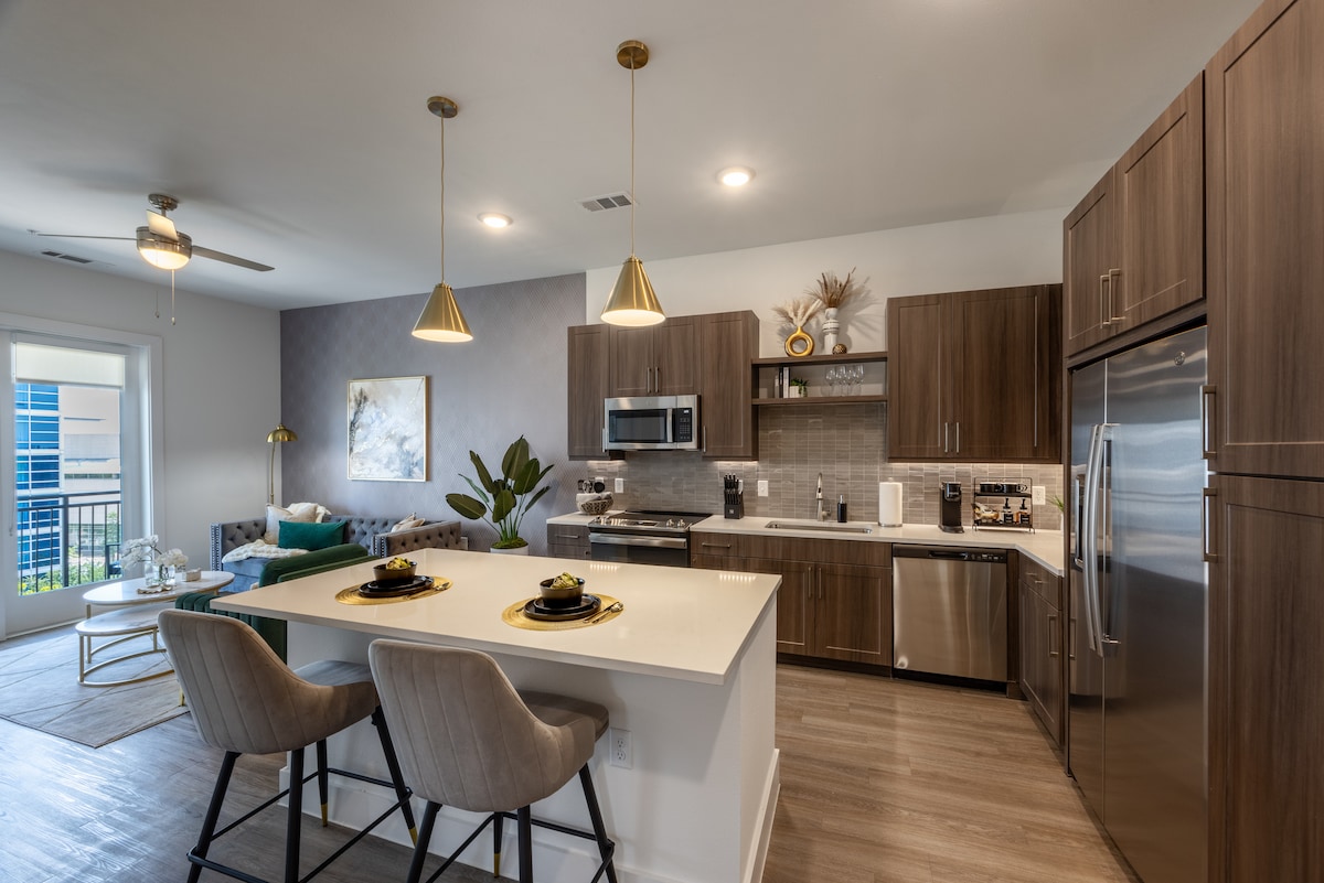 İçeri giriyorsunuz ve ilk fark ettiğiniz şey tavan; yüksekten yükseliyor, ışık içeri süzülüyor. Çantalarınızı bırakın. Tam donanımlı kahve istasyonuna gidin ve mükemmel bir fincan kahve yapın. Özel büyük verandanızda yürüyün veya aracınıza ihtiyaç duymadan herhangi bir yere gitmek için Dart İstasyonu'na 3 dakika yürüyün. 75 inç akıllı TV'de gevşeyin. 27 inç monitörlü özel masada işlerinizi tamamlayın. Tatil havuzu, 7/24 açık spor salonu, gökyüzü salonu, oyun salonu — hepsi ücretsiz. 5 kişi kalabilir. İhtiyacınız olan her şey var, ihtiyacınız olmayan hiçbir şey yok.