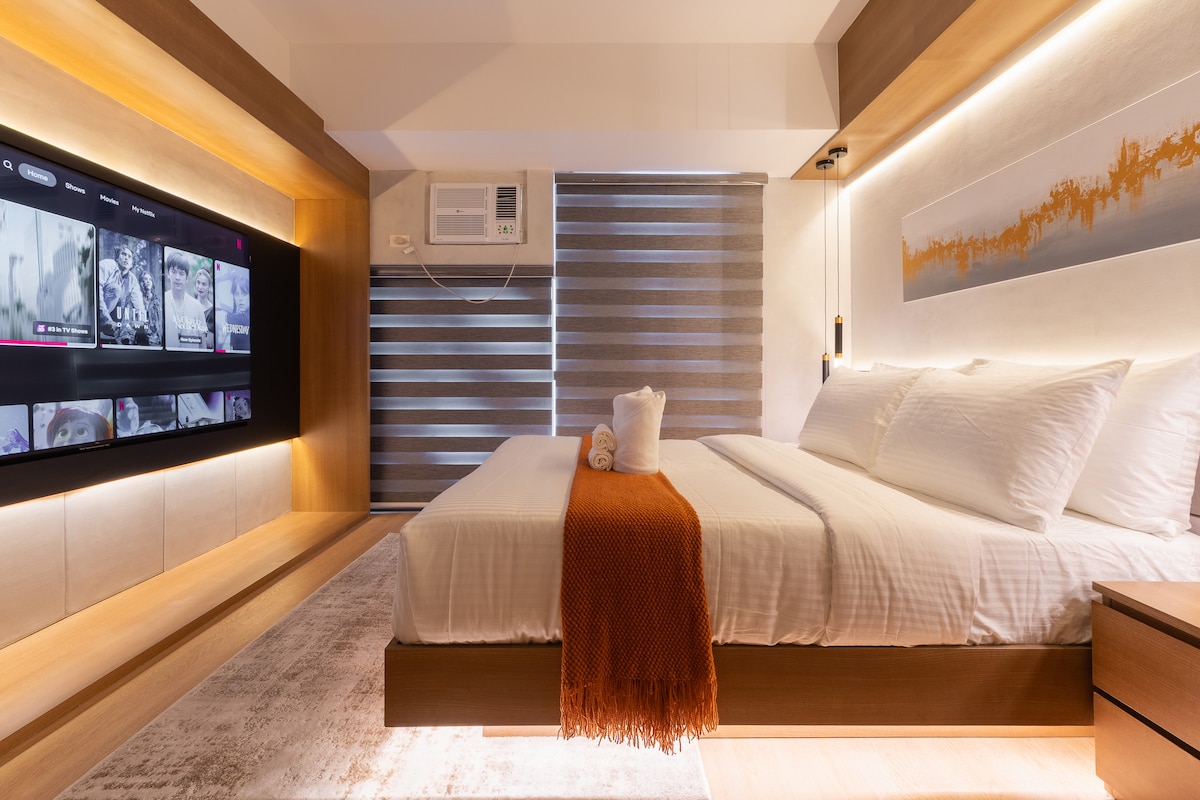 SM Aura'nın hemen karşısında ve High Street, en iyi kafeler ve şehrin favorilerinin yakınında bulunan bu lüks 1 yatak odalı süitte BGC'nin göbeğinde kalın. Geniş bir yerleşim düzeni, hızlı kablosuz internet bağlantısı, Netflix ve eksiksiz olanaklarla, tatil, iş seyahati veya hafta sonu kaçamakları için mükemmeldir. BGC'nin en yürünebilir semtinde VIP konforunu yaşayın. (Bu ünite kesinlikle sigara içilmez! 🚭 Burası kesinlikle sigara içilmeyen bir yerdir. Cezalardan ve ek temizlik ücretlerinden kaçınmak için lütfen bu kurala uyun.)