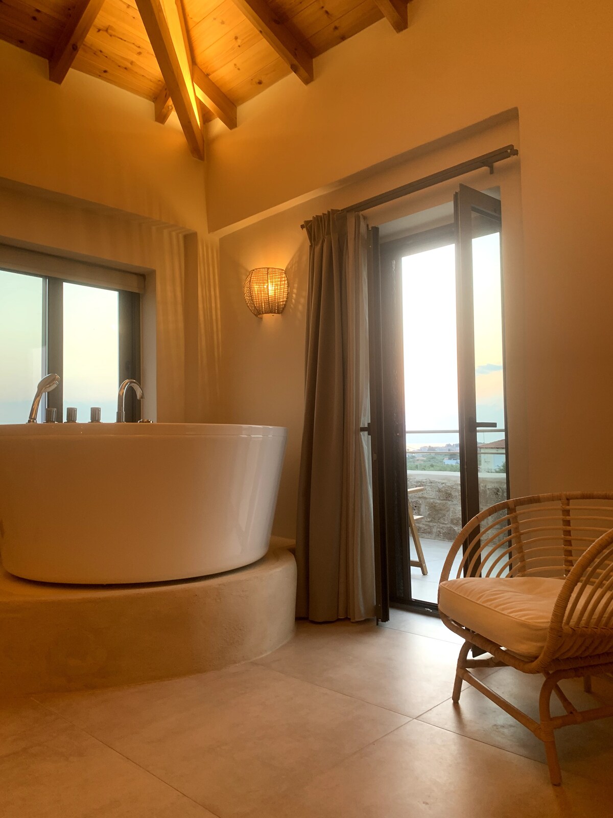 Mani'de gün batımı manzaralı özel villa, sanat ve aşk için