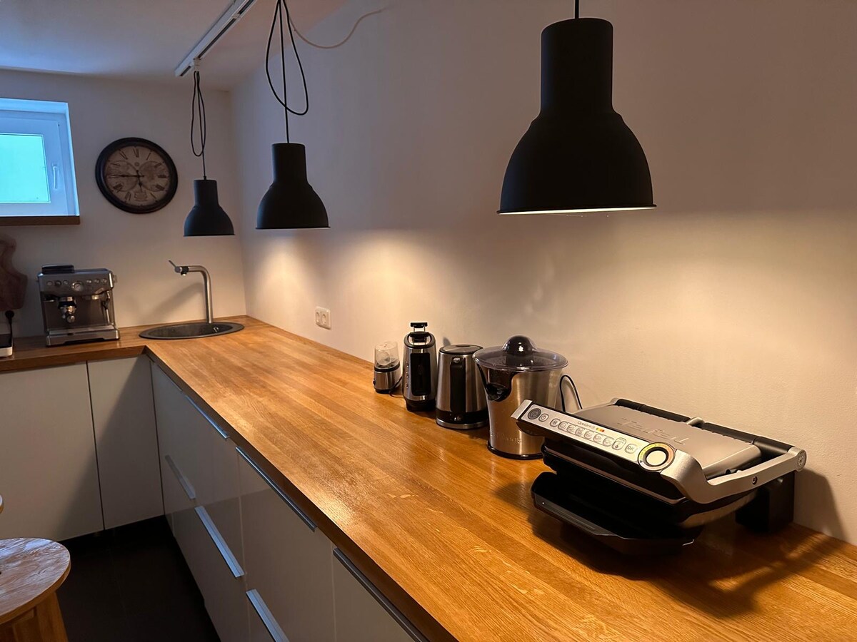 Merkezi konumdaki 54 m²'lik daire rahat ve rustiktir ve güneye bakan büyük bir balkona, oturma odasında ve yatak odasında iki düz ekran TV'ye, bir çekyata, hızlı kablosuz internet bağlantısına ve bir yeraltı otoparkına (her ikisi de ücretsizdir) sahiptir. Mutfak dahil olmak üzere tam donanımlıdır. Mikrodalga fırın, kahve makinesi (Tchibo Cafissimo - örneğin Aldi pedleri), buzdolabı ve çok daha fazlası. Havlular, nevresim takımları, saç kurutma makinesi sağlanmaktadır. Ayrıca ücretsiz ortak havuz ve sauna (20 dakika için 1 €) da bulunmaktadır.