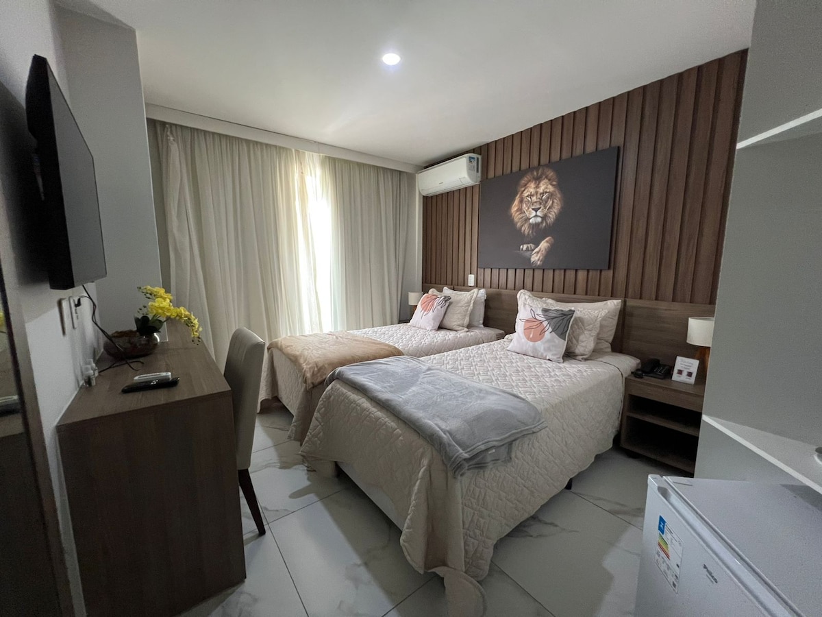 Süit, Rio de Janeiro'da çalışmak ve/veya boş zaman geçirmek isteyenler için gönül rahatlığı içeriyor. İçerik: Minibar, kahve makinesi, sandviç makinesi, kablosuz internet bağlantısı, TV, klima, ütü,saç kurutma makinesi, dolap, kasa, biyometrik kilit, bilgisayar tezgahı, 2 tek kişilik yatak ve bir balkon. 24 saat kapı görevlisi, mini market, kafeterya ve ücretsiz otoparkı olan konut. Rio Centro, Olimpiyat Parkı, Plajlar (Recreio ve Barra da Tijuca) yanında