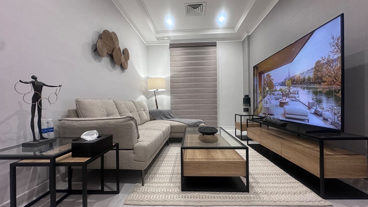 💎Self Check in fully furnished apartment in Salmiya 💎5G ultra speed WiFi 💎Philips Hue color light with mobile app 💎Self Check-In with Electronic lock 💎55’Smart TV / Bluetooth Sound bar 💎50”TV in Bedroom 💎Netflix,OSN, Prime, ZeeTV,SDisney 💎Toiletries & bath towels provided 💎Cable free mobile chargers 💎Dr. Vranjes luxury oil diffuser
