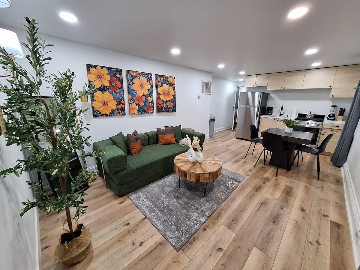 Tarihi Philadelphia'nın göbeğindeki Queen's Star'da konaklayın. Bu büyüleyici ve yeni yenilenmiş tek yatak odalı üçlü ev, Queen Village'ın en güzel ve aranan ağaçlarla kaplı sokaklarından birinde bulunmaktadır. Burası, her katta bir oda bulunan ve her katı dar bir spiral merdivenle birbirine bağlayan eski bir Philly üçlüsüdür. Yeni sahipleri 2020 baharında evi tamamen yeniledi. Misafirler kaliteli yatak takımlarının, benzersiz olanakların ve güçlü kablosuz internet bağlantısı hızlarına sahip evden çalışma alanının keyfini çıkaracak.