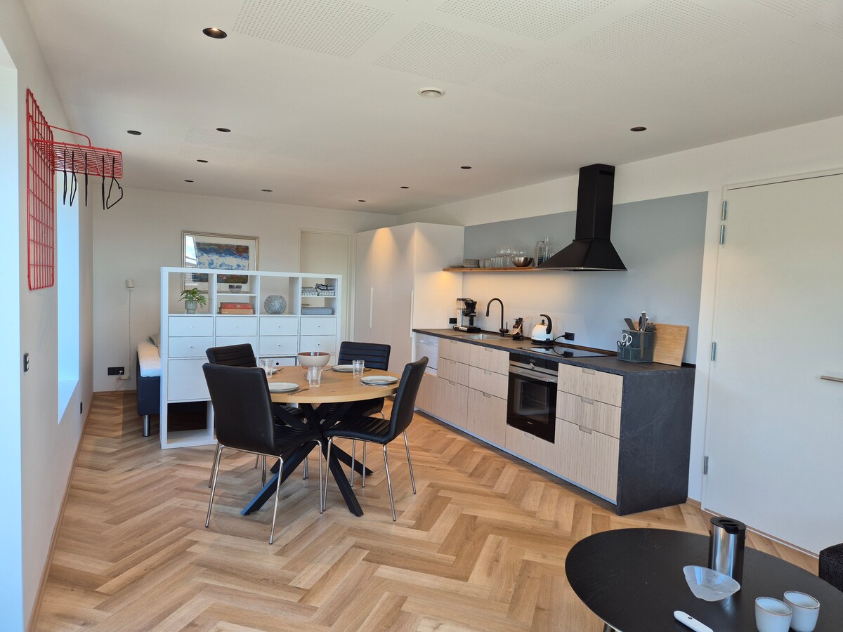 Deniz kenarında ve bir bakkal, yerel fırın/kafe, halka açık yüzme/spa salonu ve halka açık otobüslere sadece 100 m uzaklıkta bulunan bu yeni inşa edilmiş kayıkhanede konaklayın. Kayıkhane 50 m2 + tüm modern olanaklarla donatılmış bir çatı katıdır. İki yatak odası, bir banyo ve tam donanımlı bir mutfak, yemek alanı ve birkaç kanala ve kablosuz internet bağlantısına erişimi olan bir TV ile kanepe alanı bulunan ana alan vardır.
