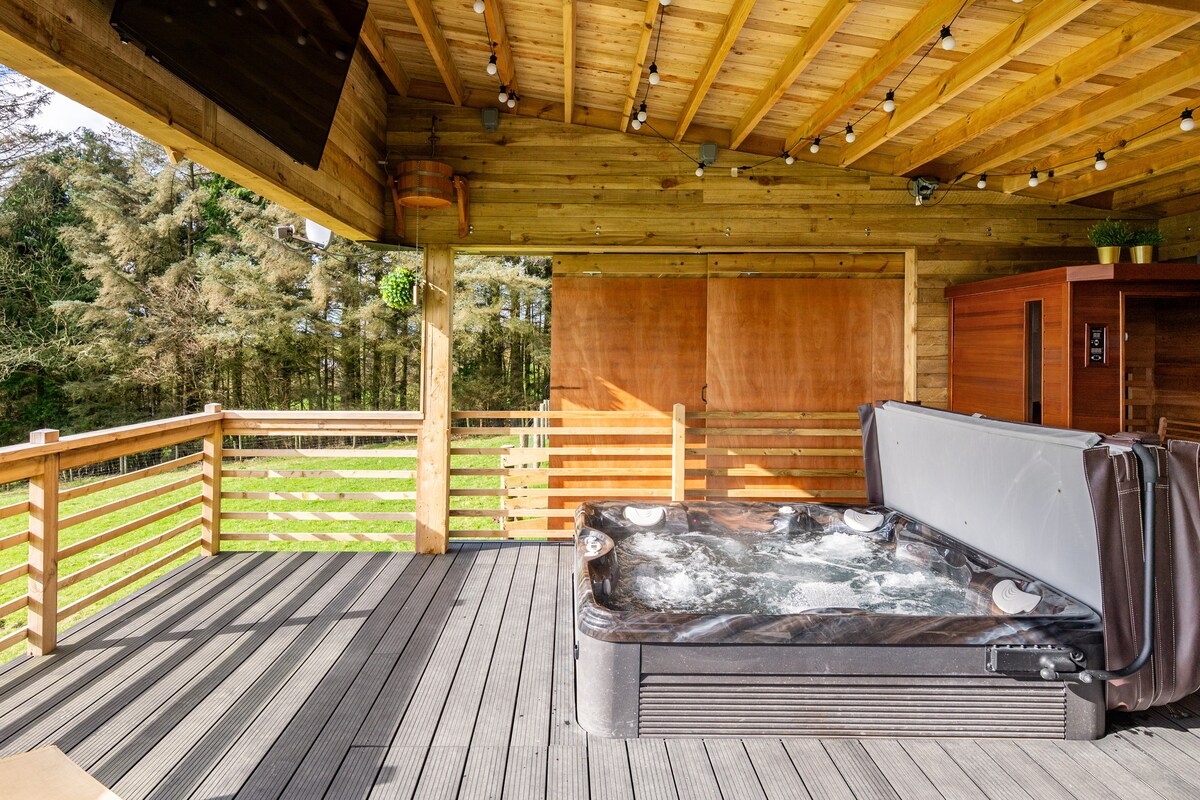 Wye Nehri ve Vadi manzaralı, yüksek bir konumda, güzel bir konumda, 2 yatak odalı ahşap pansiyon. Hem Forest of Dean hem de Wye Valley'e kendinizi kaptırmak için harika bir yer. 2 kişilik kendi kendine yönetilen odun ateşli küvet ve 2 kişilik sauna. Bir king boy yatak ve 2 tek kişilik yataklı bir çift yataklı oda. Büyük bir açık planlı yaşam ve yemek alanı ve çamaşır makinesi, bulaşık makinesi, buzdolabı/dondurucu, mikrodalga fırın ve kahve makinesi içeren tam donanımlı bir mutfak. Sınırsız kablosuz internet bağlantısı. Ateş çukuru ve barbekülü özel veranda