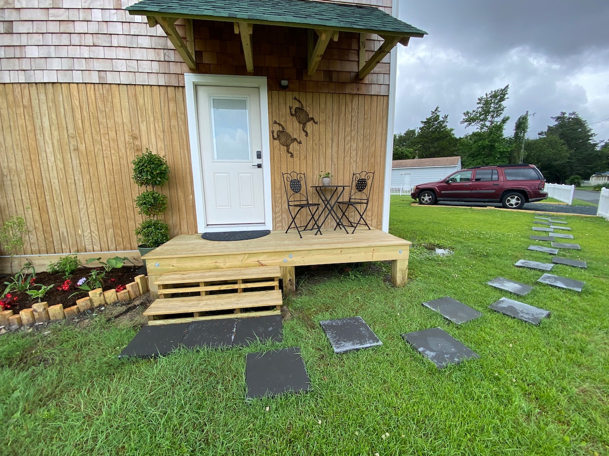 Tarihi Manteo şehir merkezine yakın konforlu bir kır evi! Bu sevimli kulübe tamamen dekore edilmiş, iyi donanımlı ve Manteo şehir merkezine sadece birkaç blok uzaklıkta! Bisikletlere kolayca yürüyün veya bisikletleri kullanın. Tarihi keşfedin, ilginç dükkanlara giderken öğle yemeği ve kahve yiyin. Balık tutmak ve keşfetmek daha hızlıysa, Manteo marina bölgesinde başlayan birkaç kiralama ve tur vardır. Evet, Nags Head plajı, sadece 6 mil uzakta!