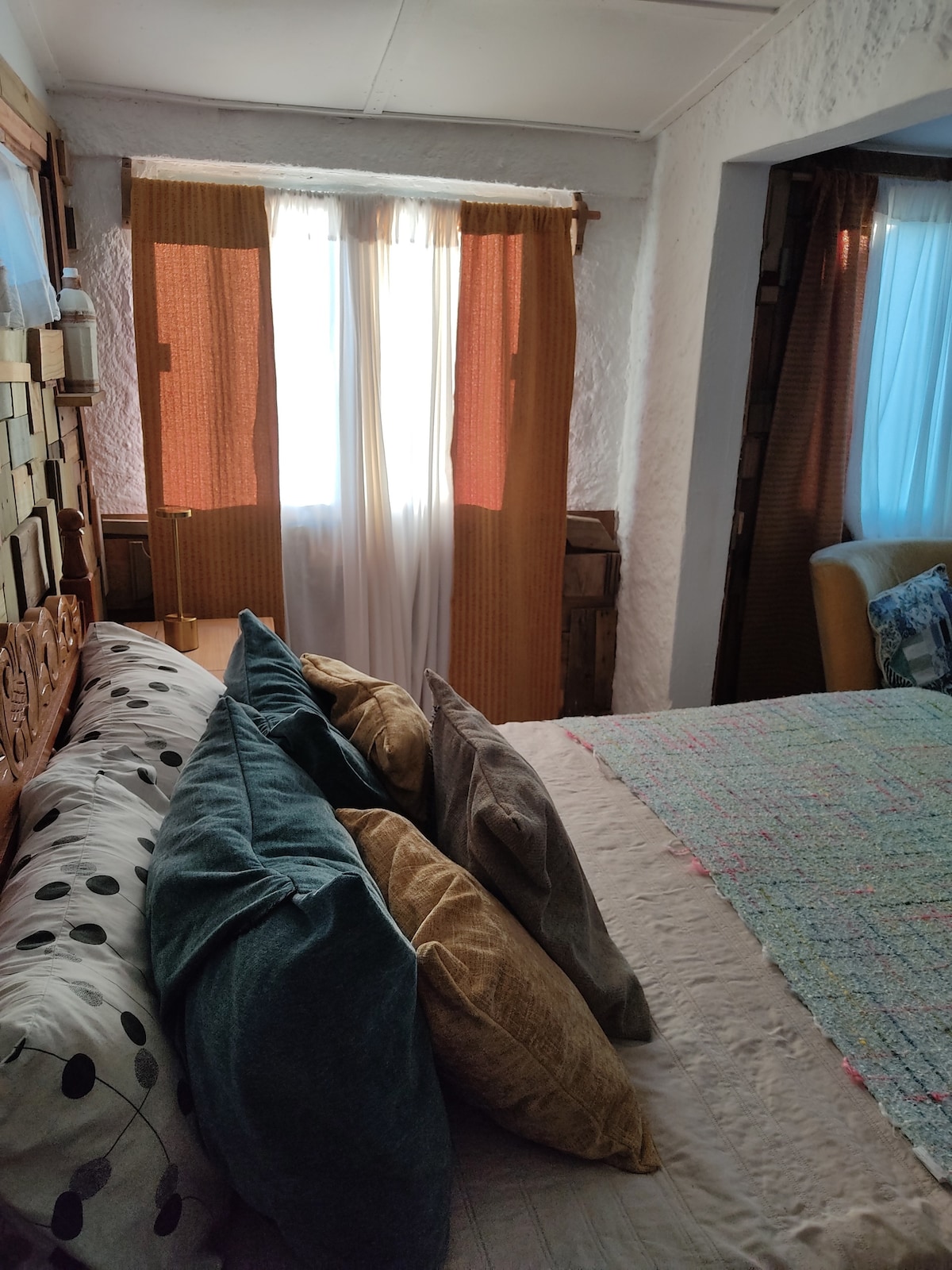 Habitación doble con baño en suite. Una cama queen muy cómoda, baño privado y un ambiente luminoso rodeado de naturaleza, para descansar con total privacidad durante tu estadía en La Pedrera. Contamos con todas las facilidades de una posada como cocina, living, comedor, patio, fogón y una ubicación ideal✨
