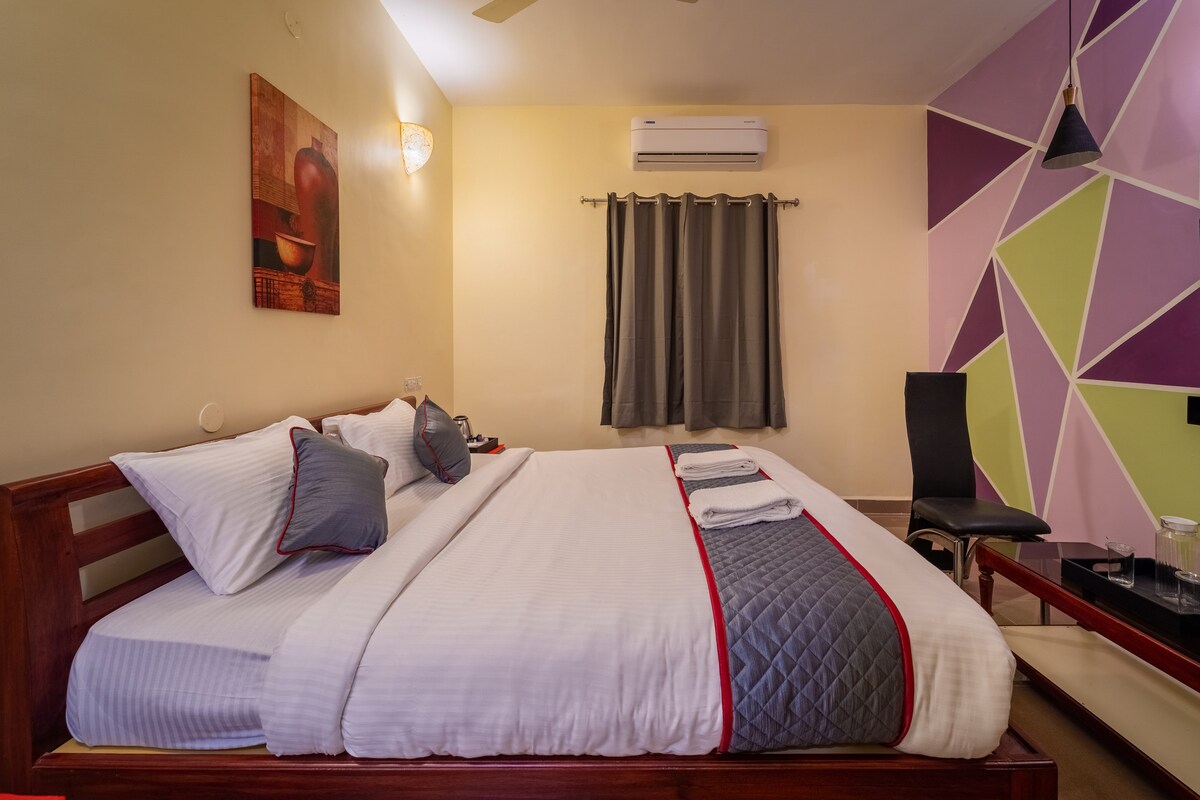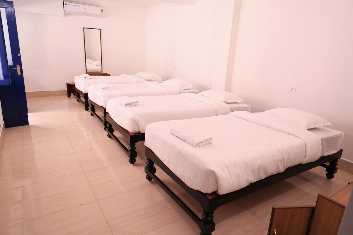 This is a compact, air-conditioned room located on the second floor . Perfect for solo travelers or couples, the room includes high-speed Wi-Fi and a smart TV for your entertainment. Please note: Car parking and lift are not available. Nearby Attractions: Rock Beach – 5 mins drive / 15 mins walk White Town – 10 mins walk Sri Aurobindo Ashram – 10 mins walk Popular cafés and restaurants – within easy reach