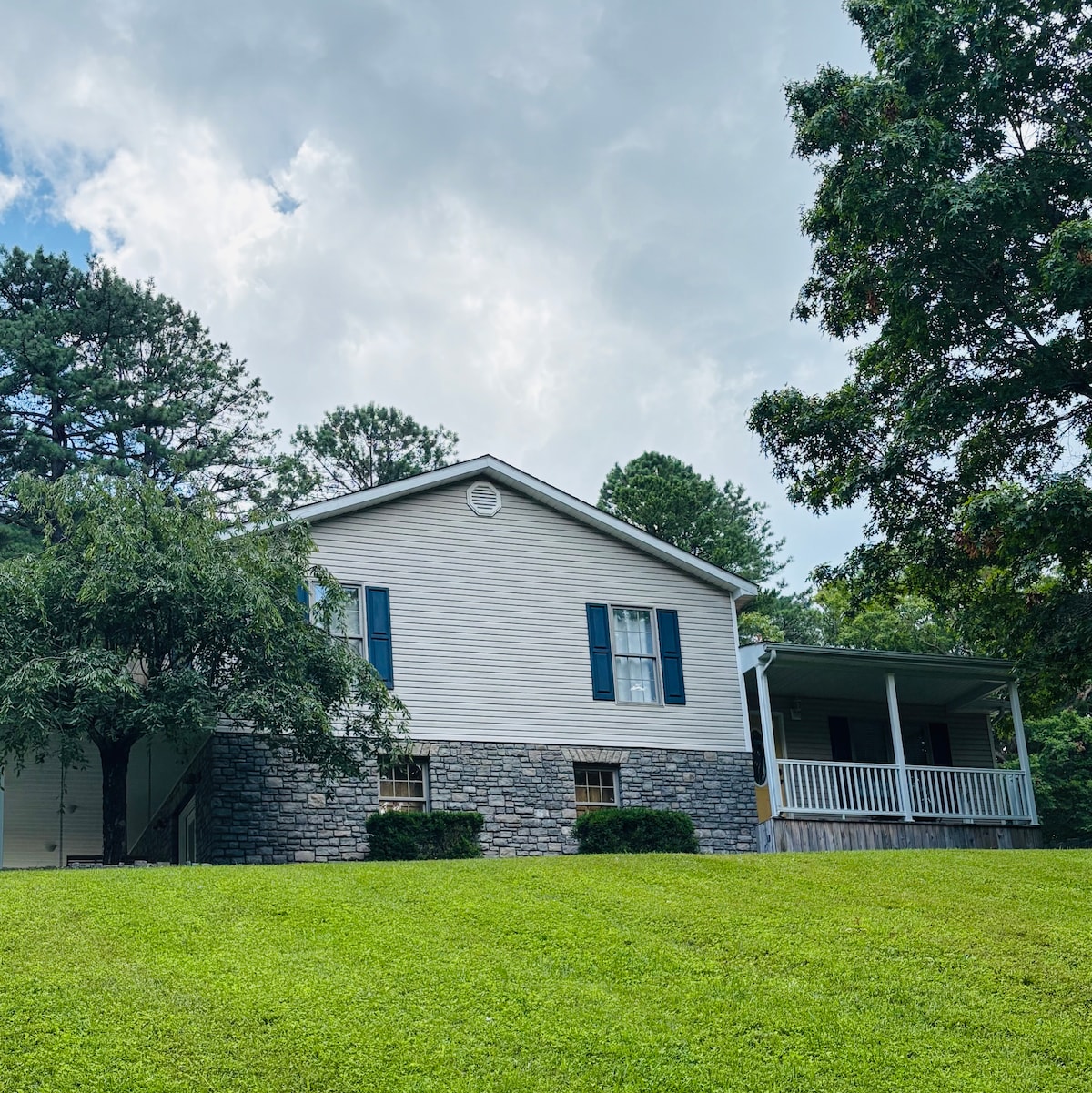 Geniş bahçeli, ön verandada salıncaklı, ateş çukurlu ve propan şömineli, 3 yatak odalı, 2 banyolu rahat ev. Tam donanımlı mutfak, yemek ve oturma odaları. Evcil hayvan dostu (en fazla 2). I-75'ten Renfro Valley, Lake Linville ve Rockcastle River'a birkaç dakika; Richmond, Somerset, Londra, Lake Cumberland ve Laurel Lake'e yaklaşık 40 dakika. Mükemmel bir aile tatili! Evde ayrıca, suda geçen uzun bir günün ardından herkesin temizlenmesi için mükemmel bir tankless sıcak su ısıtıcısı var! Keşfedilecek doğa ile çevrili birçok alan da var!