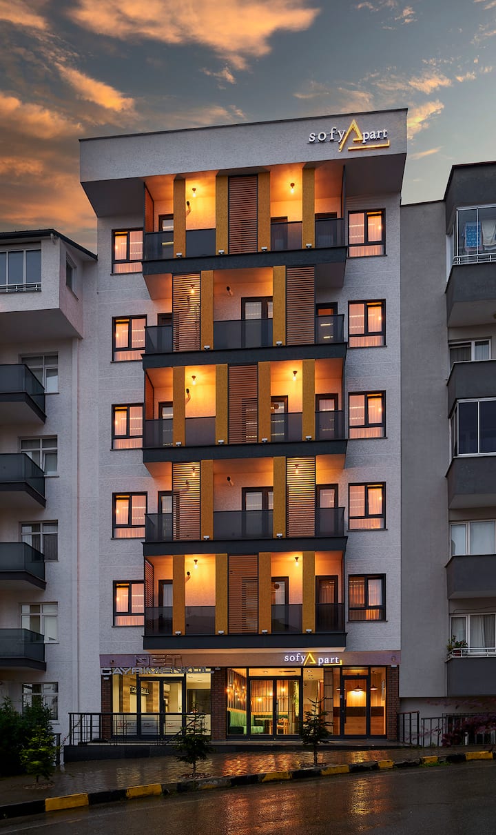Trabzon Sahil yoluna 100 metre mesafede, şehir merkezinde sayılabilecek, tarihi ayasofya camii 200 METRE mesafededir ve yürüyerek birçok restaurant, cafe ve marketlere ulaşılabilir.