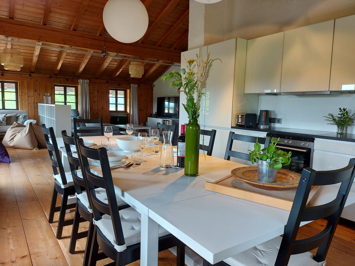Günlük "Stresten" kurtulmak ister misiniz? Büyük Chiemsee'den çok uzak olmayan ve birkaç küçük göle yakın, küçük böcek seviyelerimizde hoş tön Seeon'da sizi ağırlamak istiyoruz. Dairemizin ayrı bir girişi vardır, oldukça yeni döşenmiştir ve bahçe alanı çocukların oynaması için bazı olanaklarla birlikte kullanılabilir. Ayrıca 2 köpek, birkaç tavuk ve ördek gibi evcil hayvanlarımız olduğu için, köpeklerinizi de yanınızda getirmenize izin verilir! İlgilenir misiniz? Rezervasyon isteği almayı sabırsızlıkla bekliyorum! Dominic