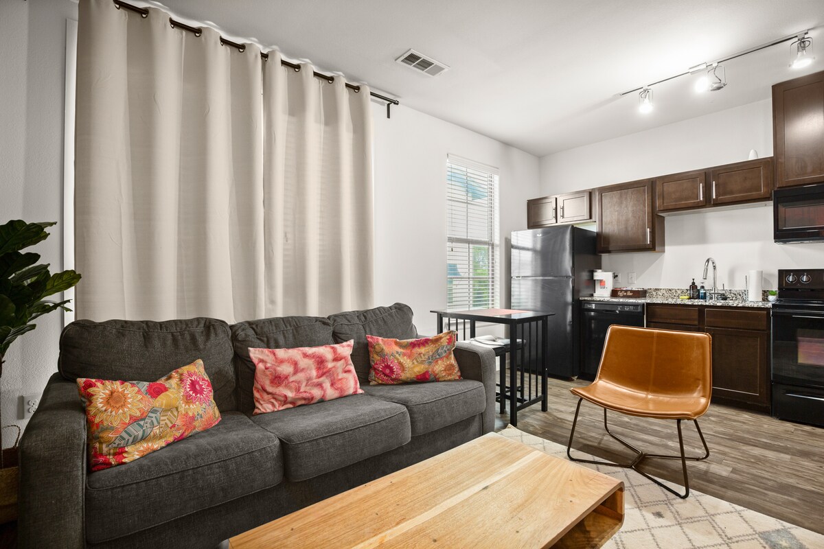 Settle into our vibrant and inviting space in North Austin, where comfort meets convenience. Whether you’re visiting for business, exploring the city, or just looking for a relaxing place to recharge, this thoughtfully equipped stay has everything you need to feel at home. ✔ Sleeps 4 – Bedroom + Living Room ✔ Spacious, Open-Concept Layout ✔ Fully Stocked Kitchen ✔ In-Unit Washer & Dryer ✔ Smart TVs with Roku Access ✔ Fast & Reliable Wi-Fi ✔ On-Site Perks: Gym, Pool, Free Parking
