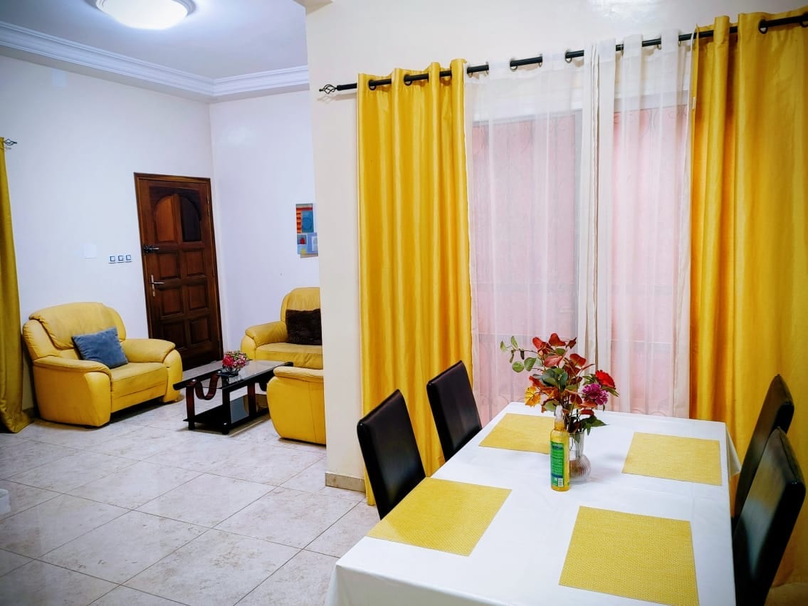 Bu daire Zac Mbao'da, Brio Dorée, Tapis Rouge ve Auchan'a yakın, Rond Point AXA'ya sadece 150 metre mesafededir. Kolay erişilebilen sessiz, güzel ve temiz bir ortam sunar. 2. katta iki adet tek yatak odalı ünitemiz ve 3. katta iki yatak odamız bulunmaktadır. Her misafire varışta 5.000 CFA (yaklaşık 9 $) elektrik kredisi verilir. Bu kredi kullanıldıktan sonra, misafir konaklamasının geri kalanındaki tüm elektrik maliyetlerini karşılamaktan sorumludur.